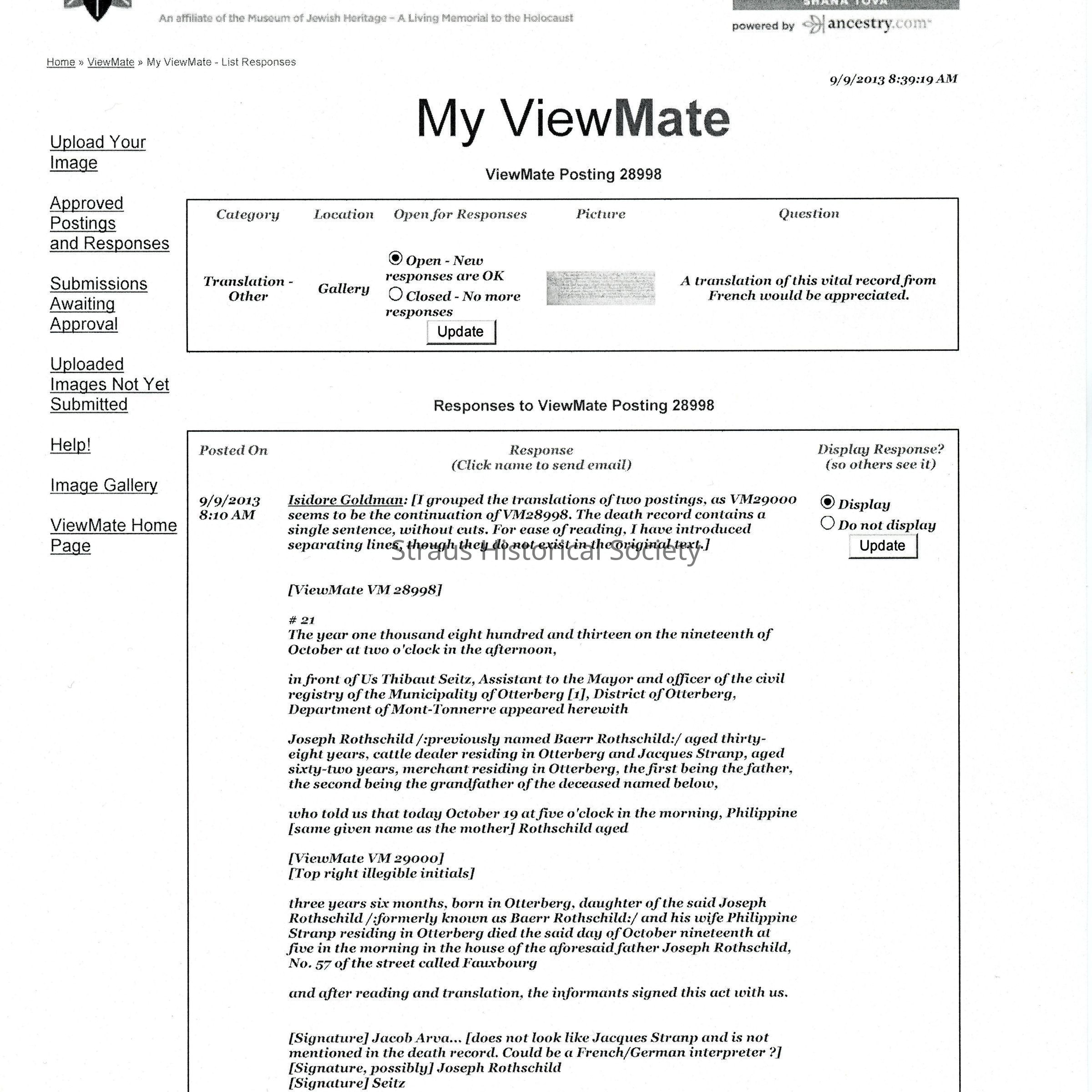 Death certificate for Philippine Rothschild, Son of Joesph Rothschild previously known as Baer Rothschild and Philippine Rothschild nee Straus previously known as, Zerle Straus Rothschild. 19 October 1832 in Otterberg.