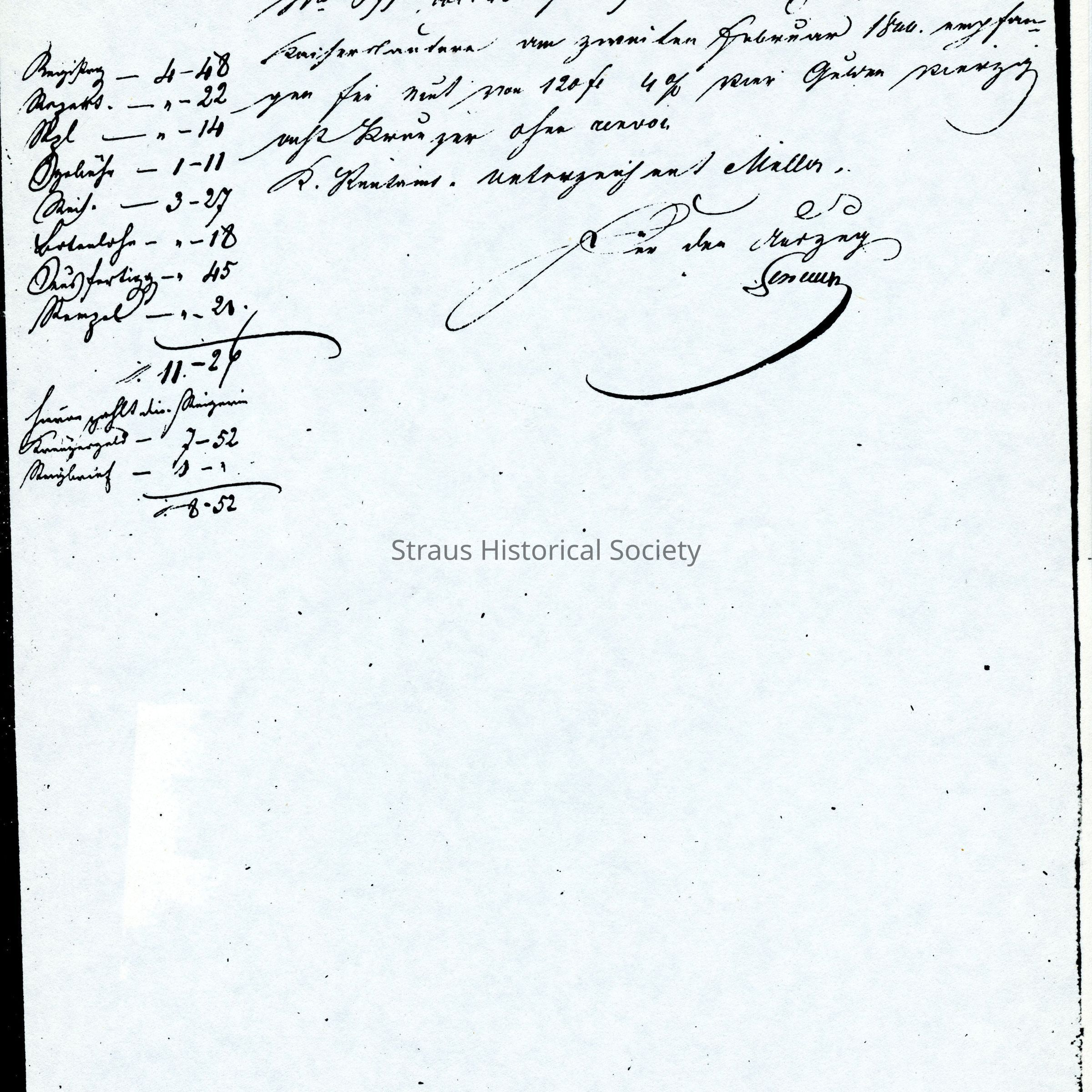 Business Paper: Steigbrief fur Johanetta GRUENEBAUM, mentions Isaac Straus and L. Straus junior. No. 48. 1844. In Old German. Not translated. Five handwritten pages.Entry/Object ID