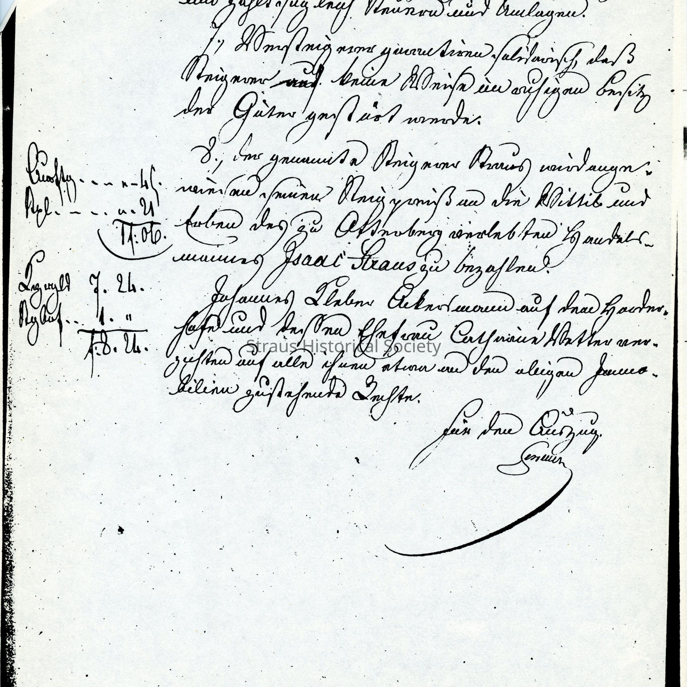 Business Paper: Steigbrief fur Lazarus Straus junior No. 418. 1838. In Old German. Not translated. Five handwritten pages.Entry/Object ID
