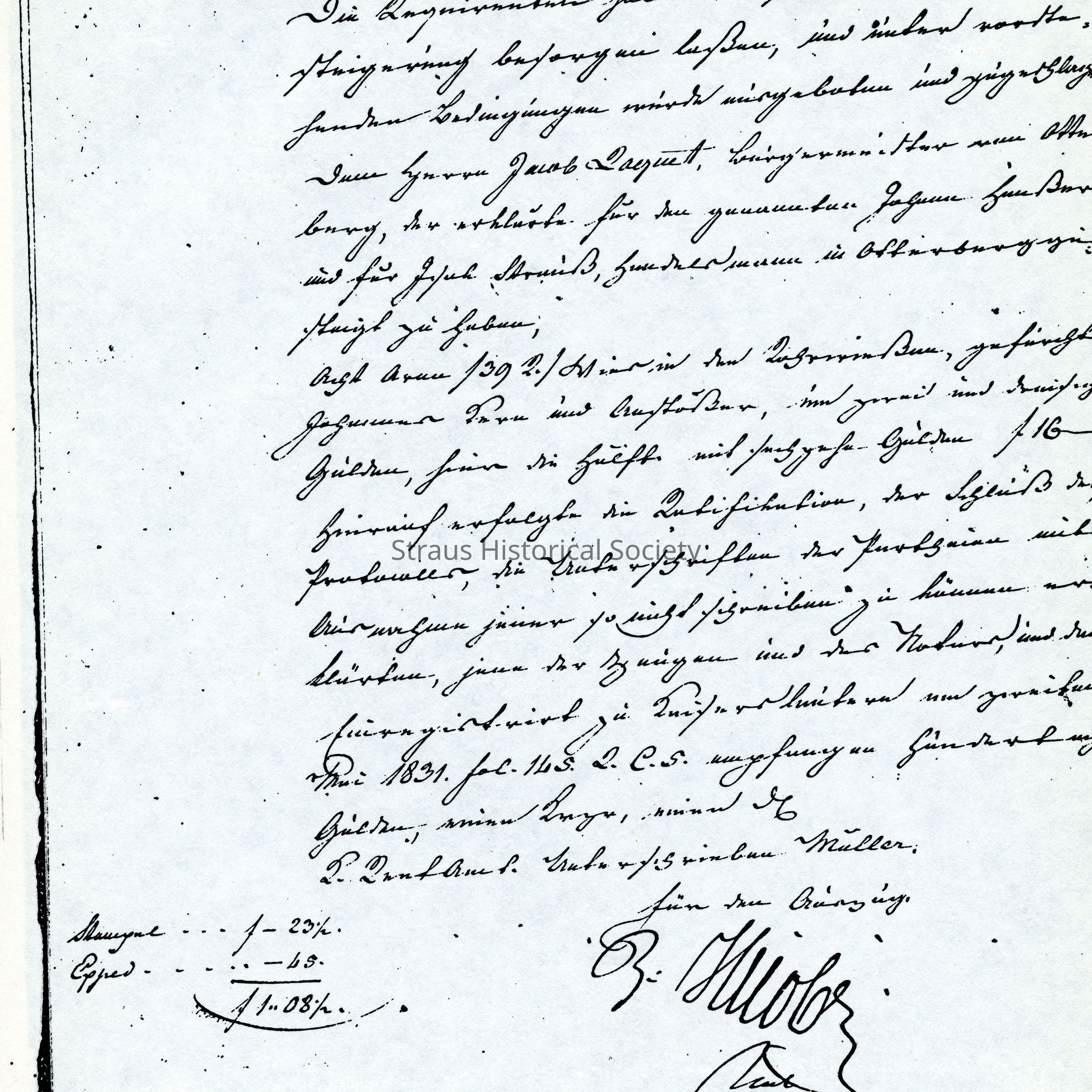 Business Paper: Begins with Auszug. Lazarus Strauss, Otterberg in mentioned. No. 146. 1831. In Old German. Not translated. Five handwritten pages.Entry/Object ID