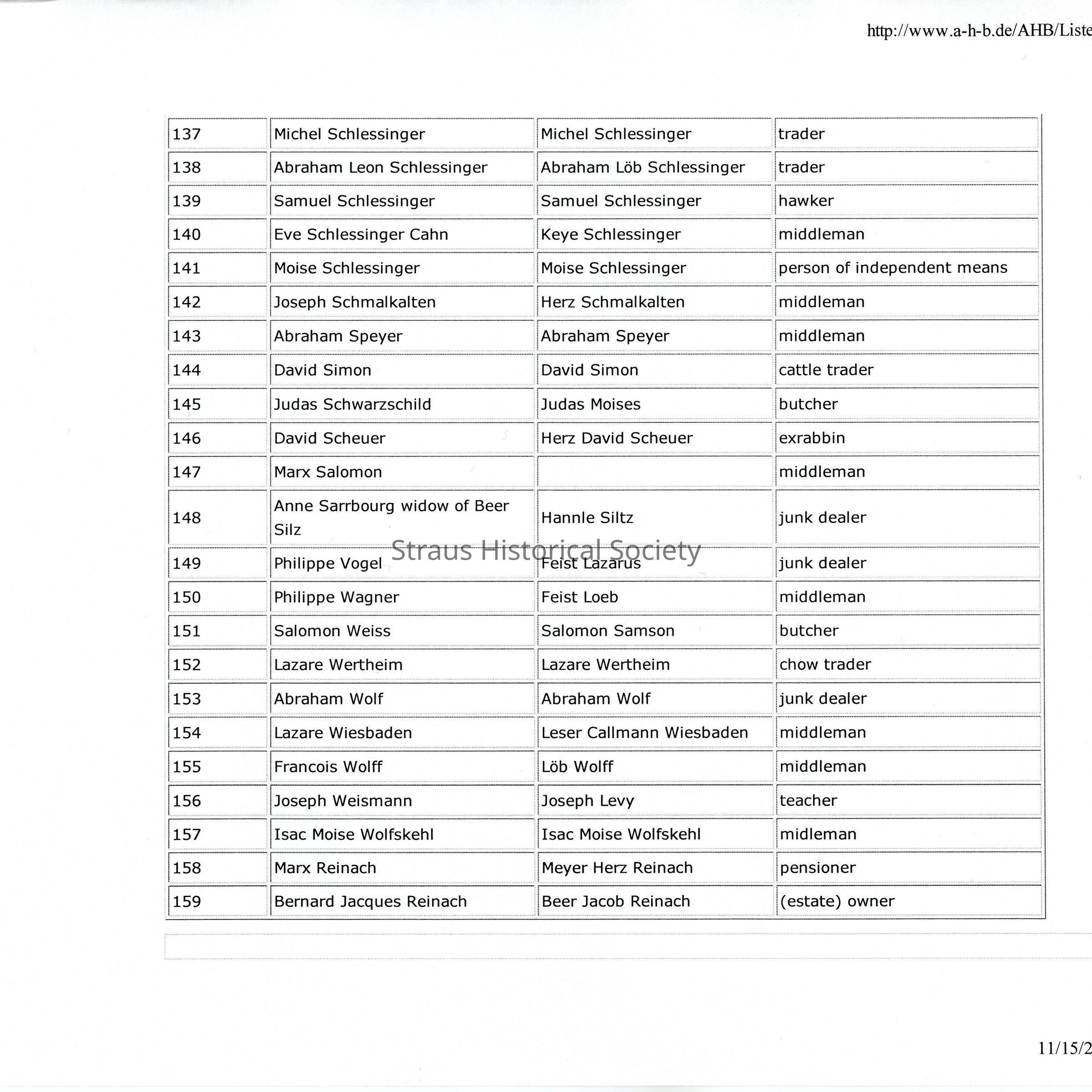 After Napoleon's Declaration of Regulating the Jews in 1808, all Jews were required to declare a last name. This entry is one of the lists of the old and new names. Several members and close relatives of the Straus family are on these lists.