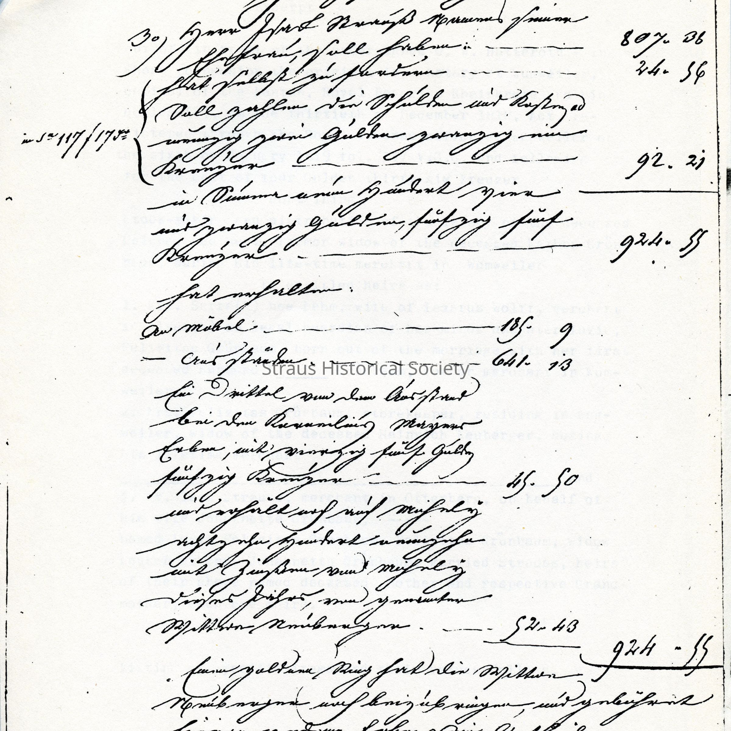 Business Paper: Distribution of legacy left by Helena nee Merz (?) former widow of the deceased Nathan GRUENEBAUM, during his lifetime merchant of Wumweiler. 13 December 1818. In Old German. Ten handwritten pages. With English translation by Gertrud Miller.