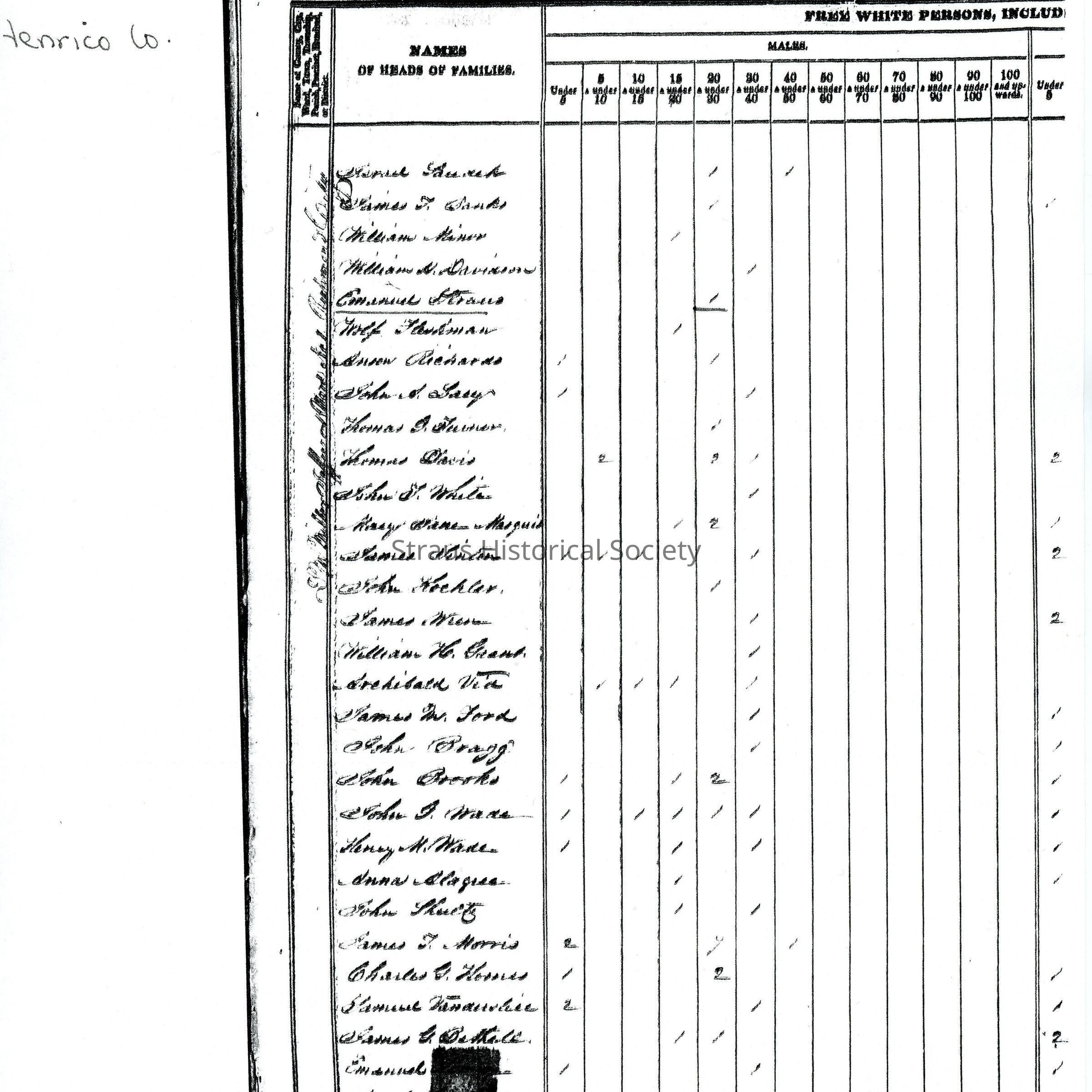 1840 Henrico County VA Census: Emanuel Straus. Age more than 20 but less than 30.