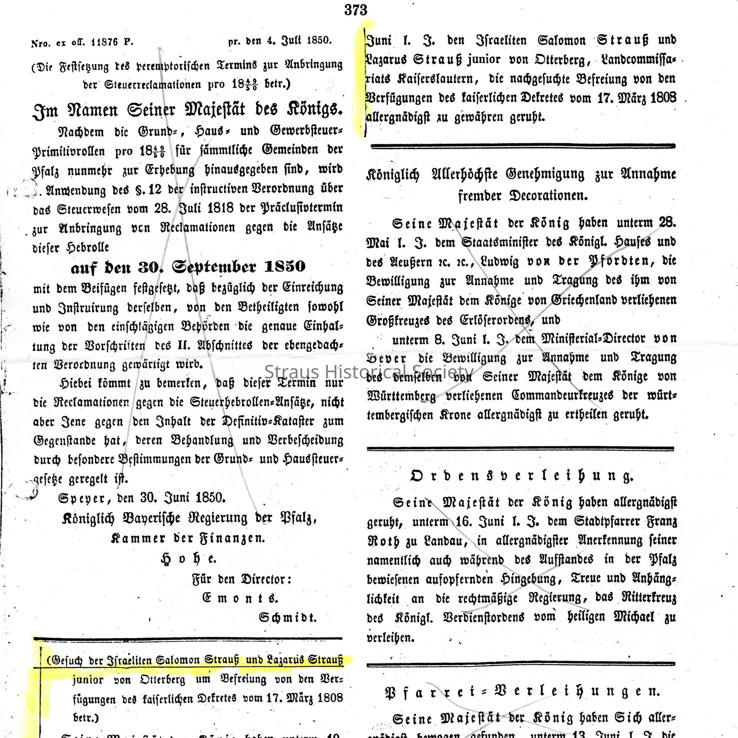Name Adoption Record: Solomon Straus and Lazarus Straus junior. In German. English translation included.