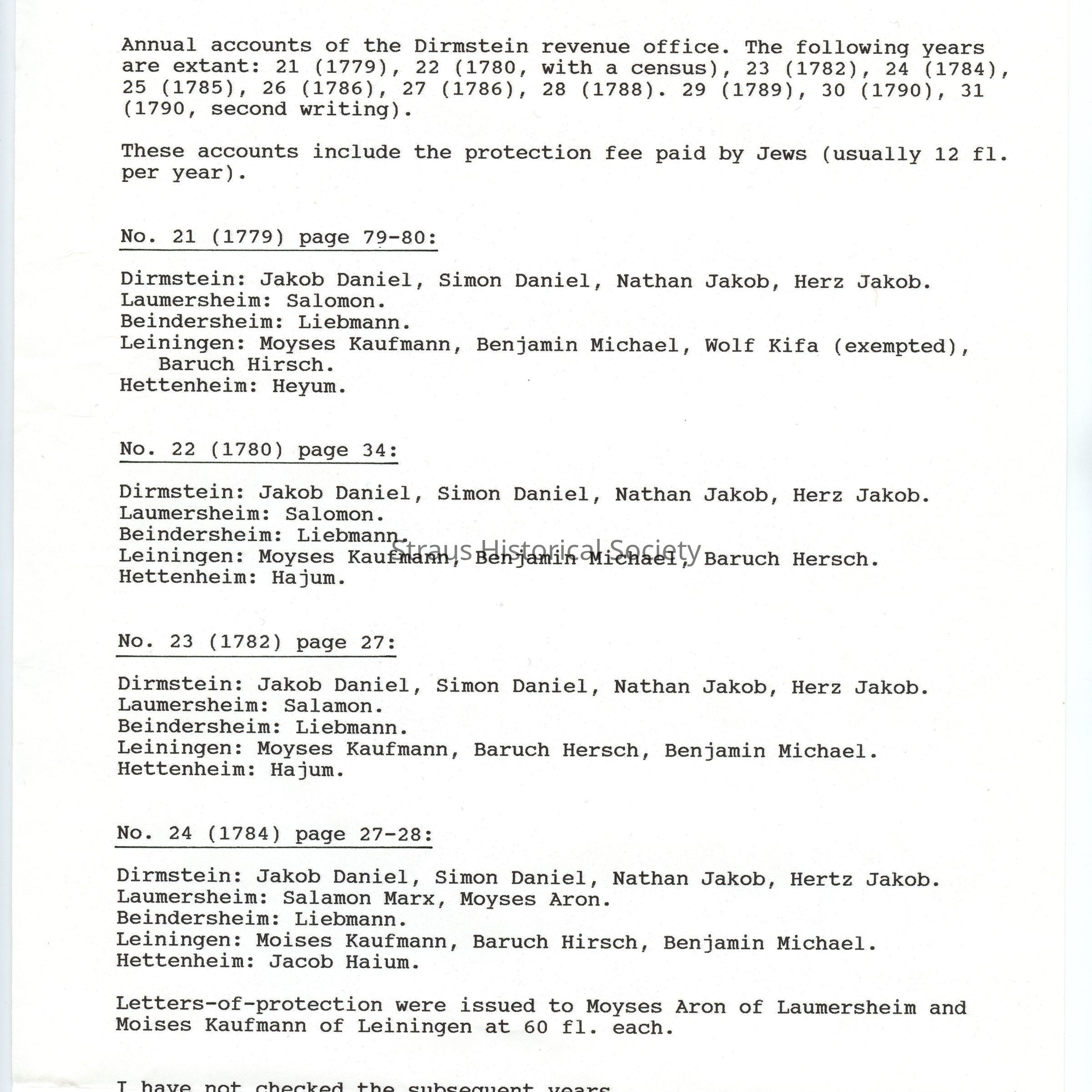 Statements of the offical winery of Dirmstein 1779-1790.