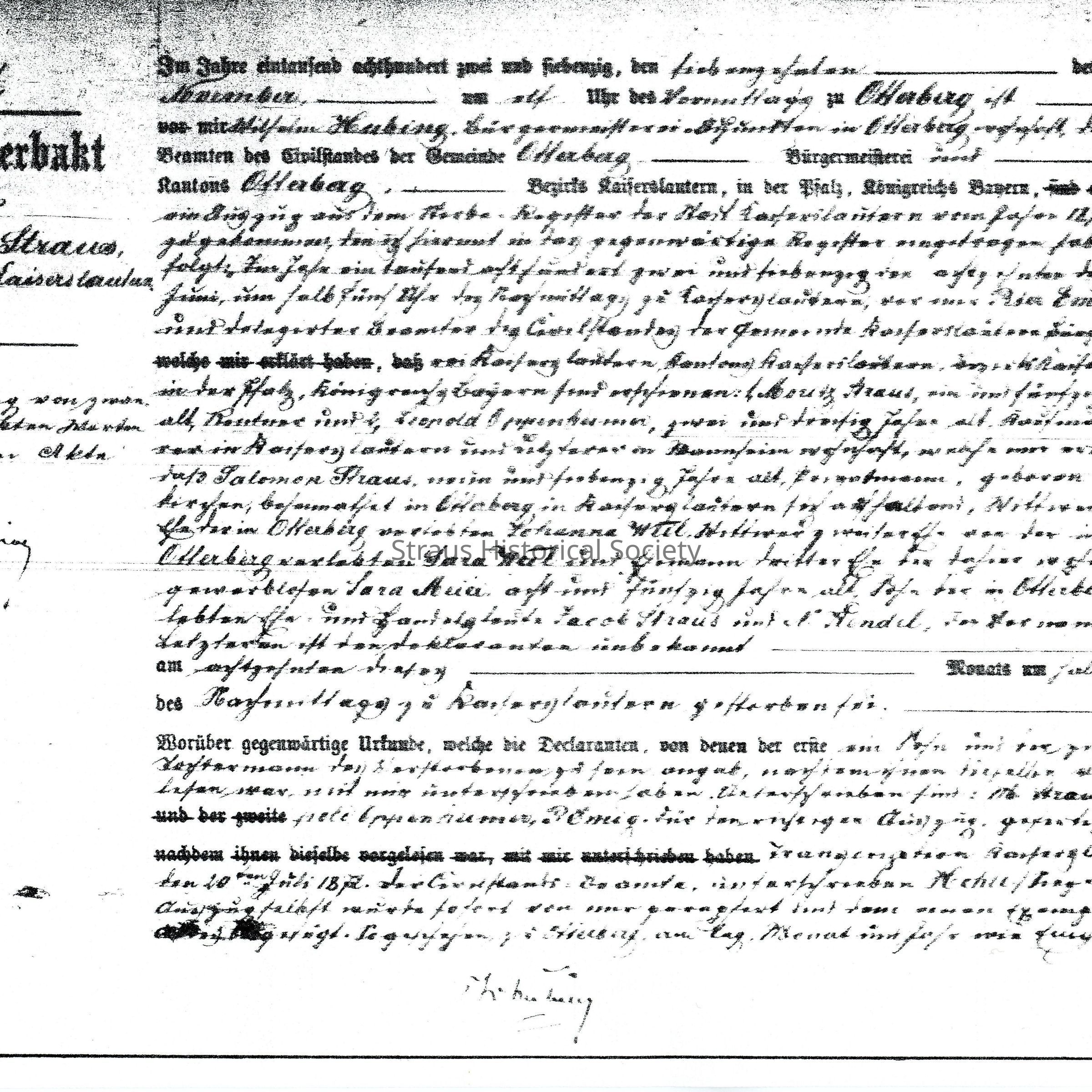 Death Record: Salomon Straus, husband of Johanna Weil and Sara Weil. Died in Kaiserslautern 18 November 1872.