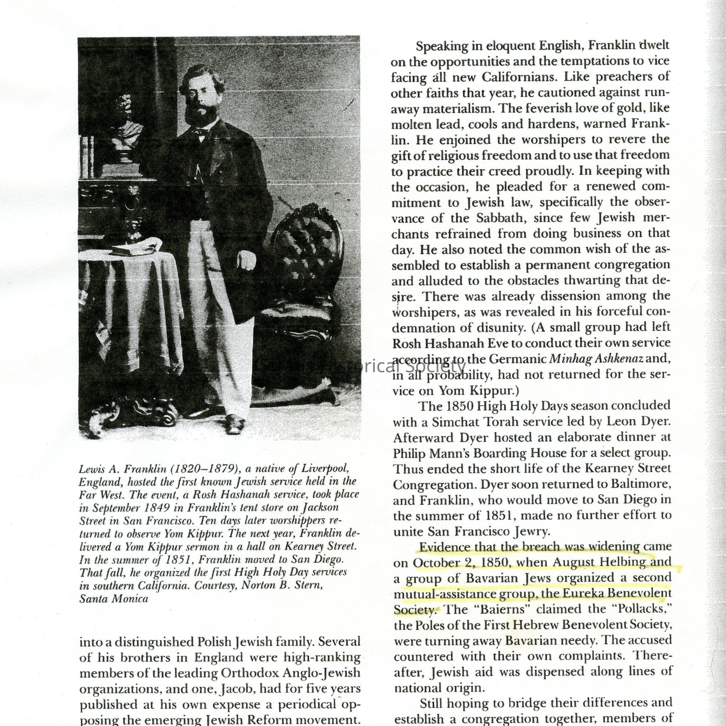 Book: Rochlin, Harriet and Fred, Pioneer Jews: A New Life in the Far West. Boston: Houghton Mifflin Company, 1984. Page 196.