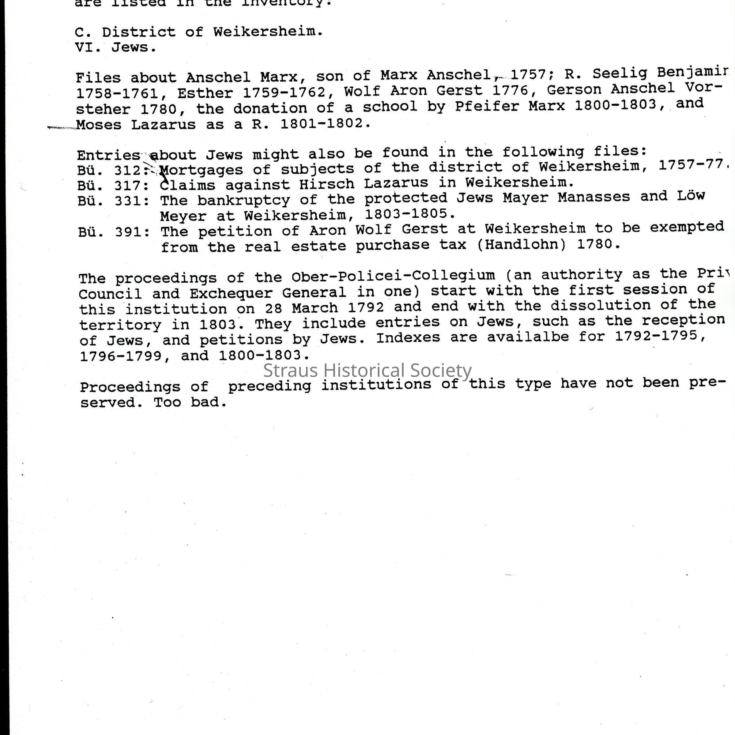 Record: Hohenlohe-Zentralarchiv Neuenstein, Abt. Schlossarchiv Weikersheim, Bestand, Regierung ?hringen. One typewritten page. In English.