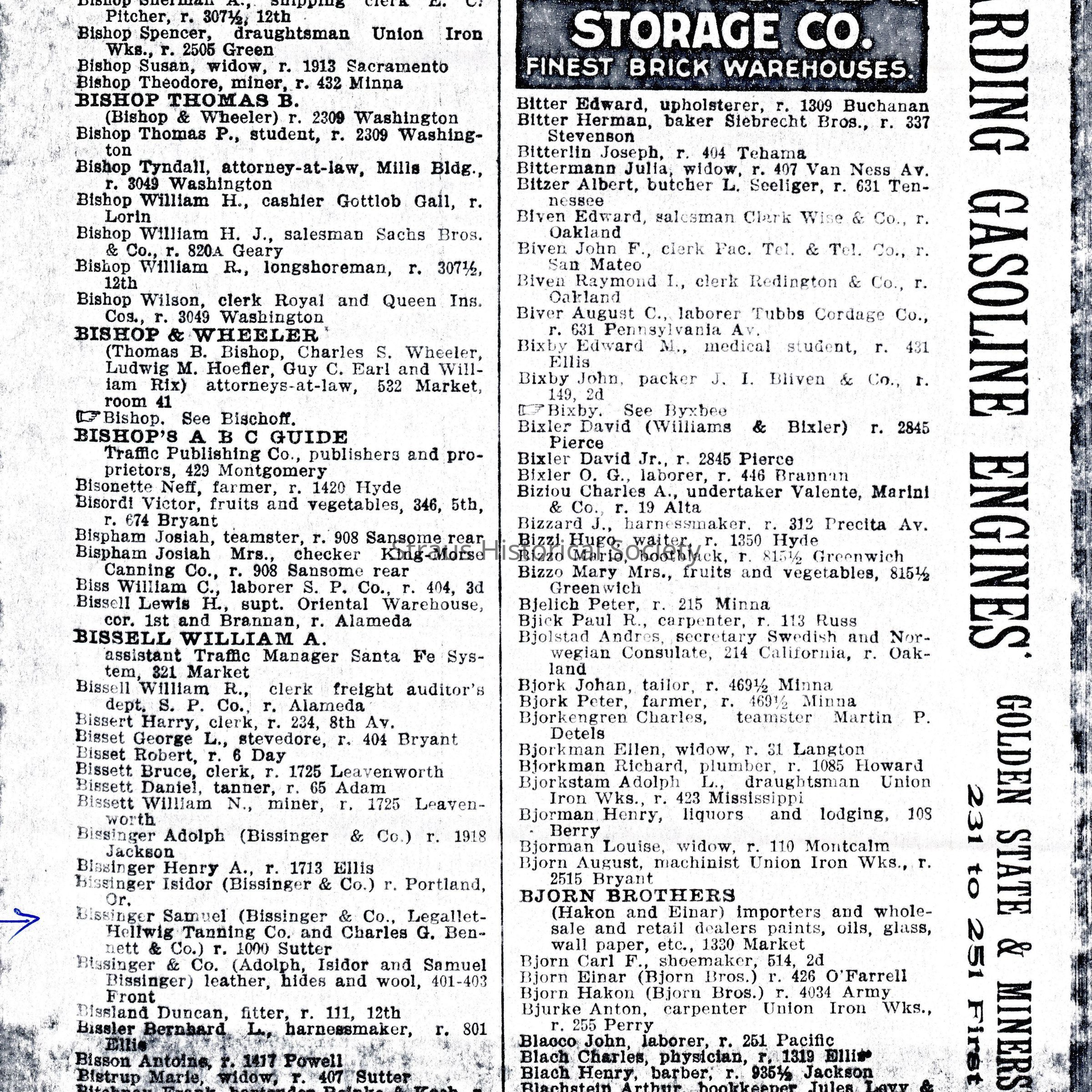 This directory lists Samuel Bissinger, Bissinger & Co.