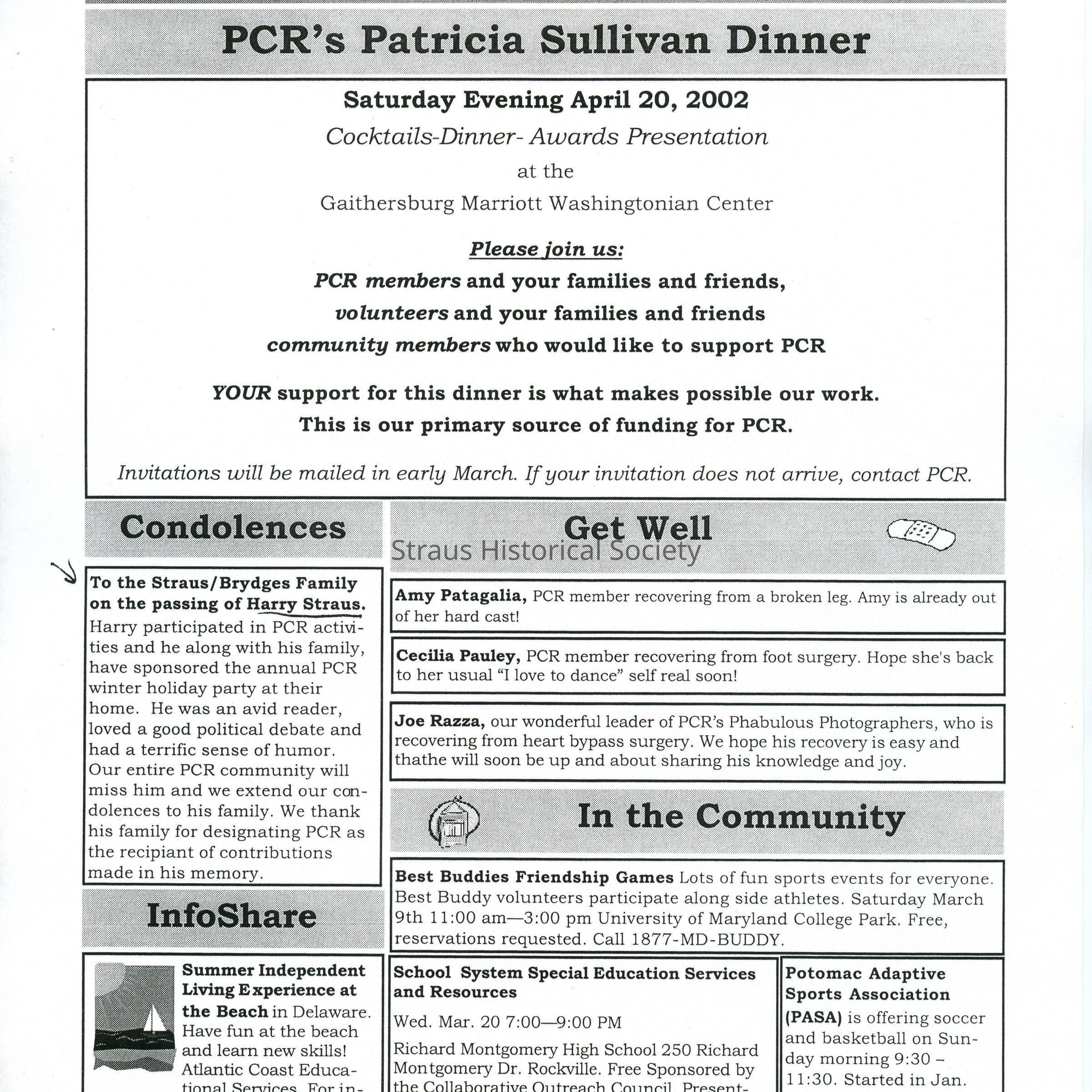 Newsletter: "Condolences" To the Straus/Brydges on the passing of Harry Straus," Potomac Community Resources, Inc.Entry/Object ID