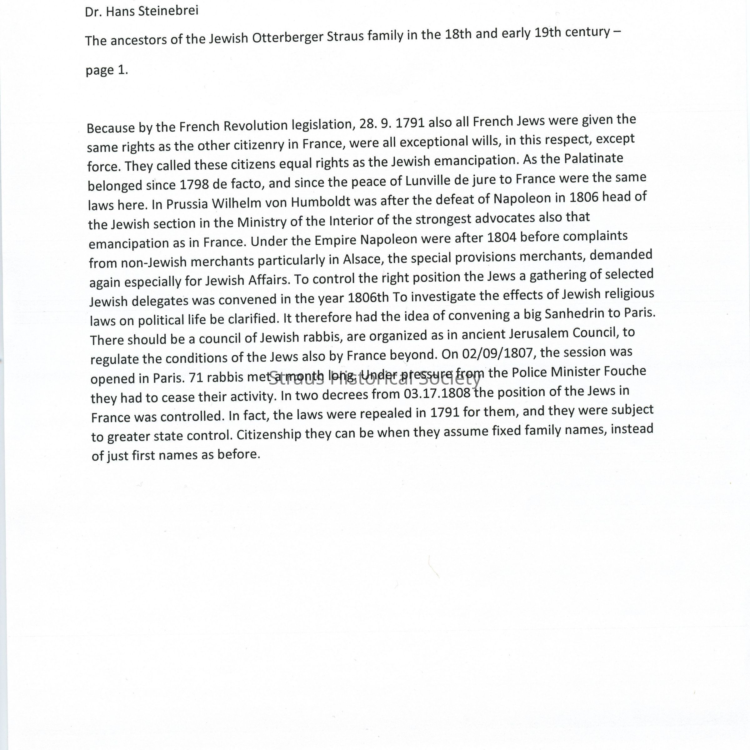 Article titled: "The ancestors of the Jewish Otterberger Straus Family in the 18th and early 19th century.." by Hans Stienbrei with English translation by google translate.