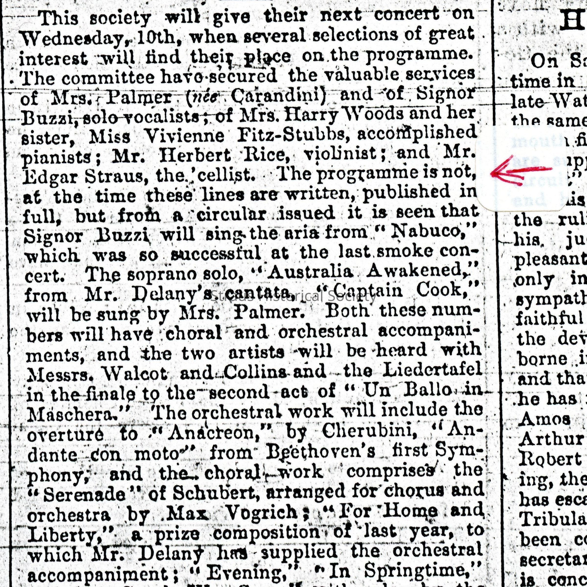 Article: "The Sydney Liedertafel," The Sydney Mail. 6 July 1889. Page 13.Entry/Object ID