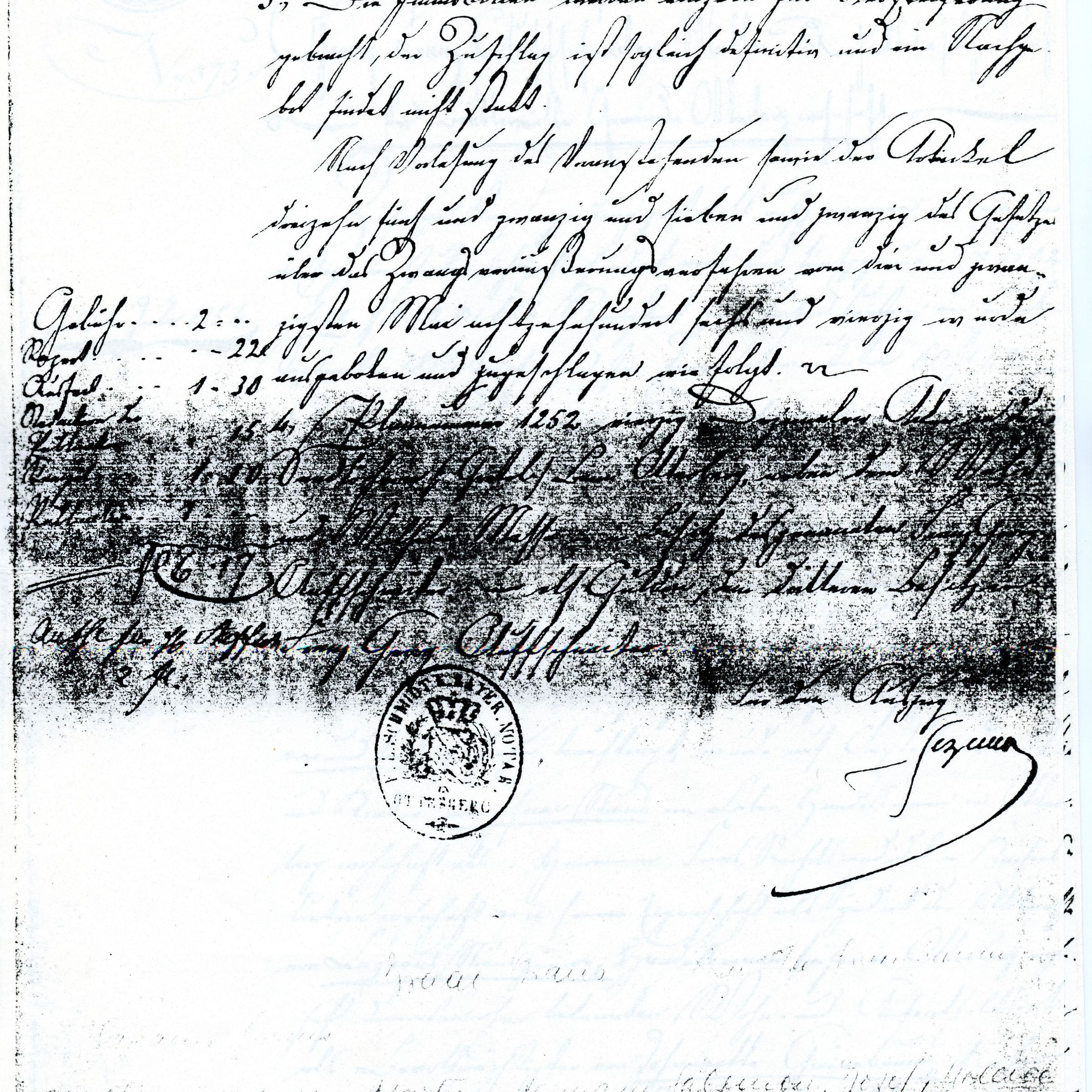 Business Paper: ....brief, mentions Johanetta GRUENEBAUM No. 373. 31 July 1854. In Old German. Not translated. Four handwritten pages.