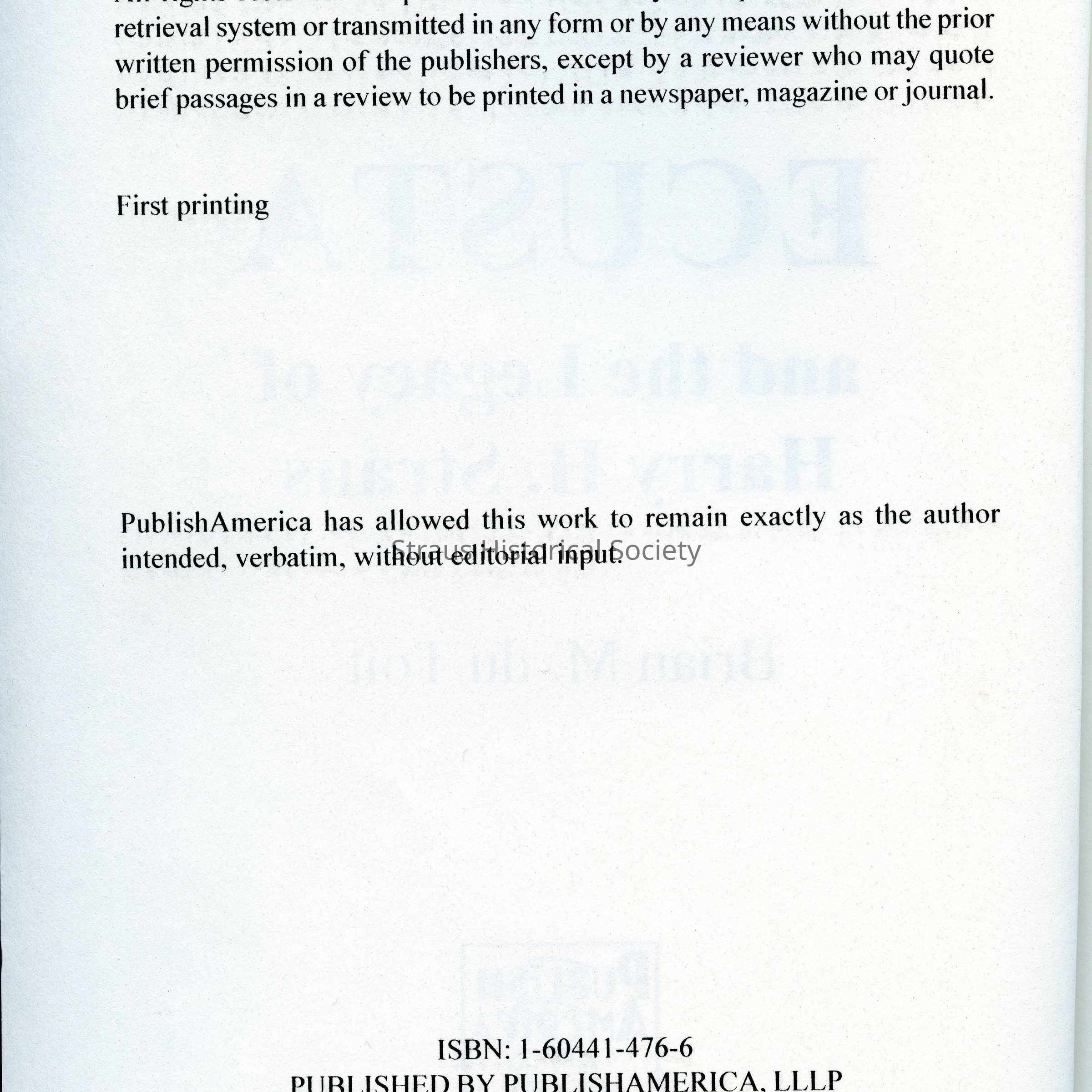 Information about Hans Hermann (Harry H.) Straus and his family was supplied to the author by SHS. This book is a biography of Harry H. Straus that highlights his creation of the Ecusta Paper Corporation and his influence on the paper cigarette.
