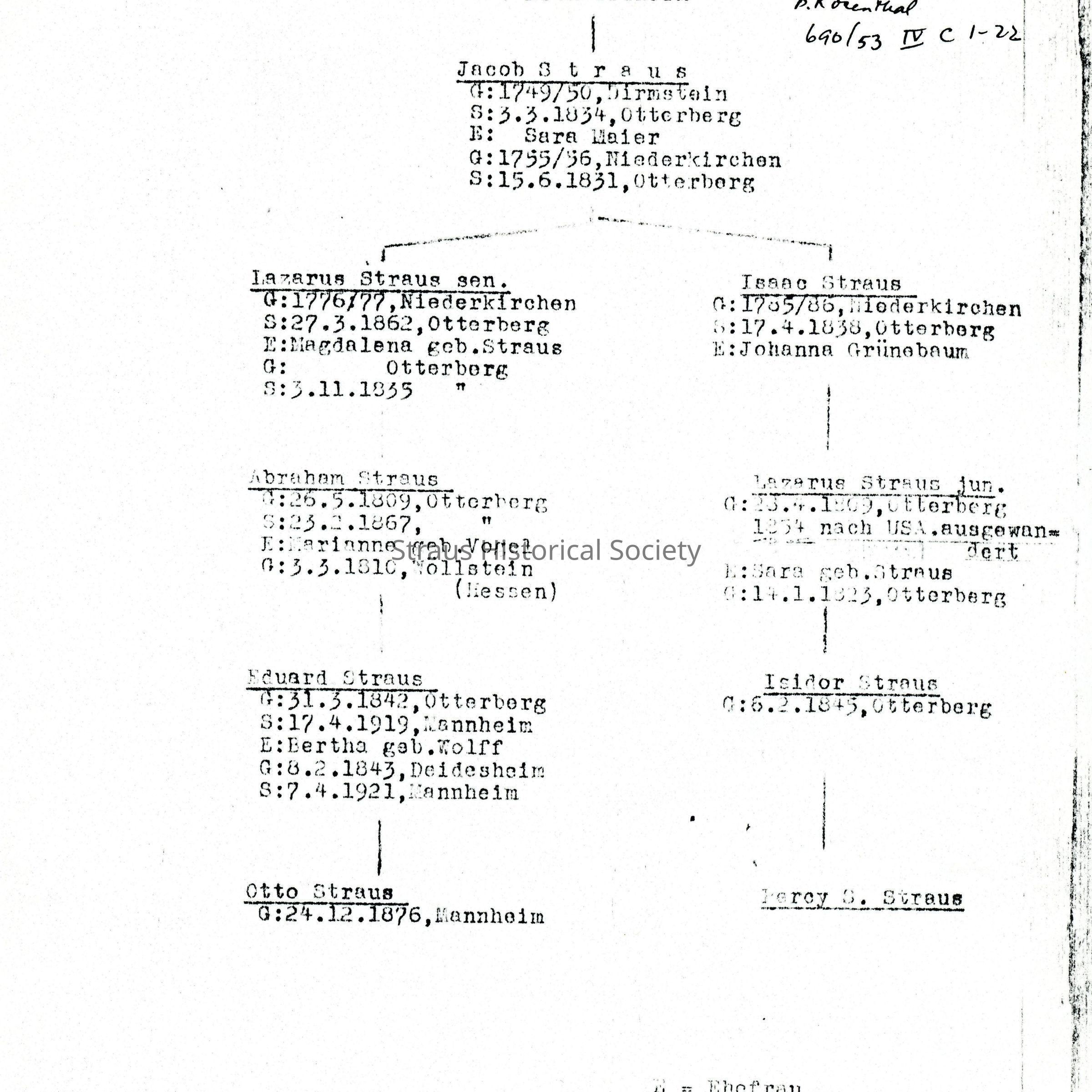 Rosenthal, Berthold, Straus Lineage. In German. One typewritten page.
