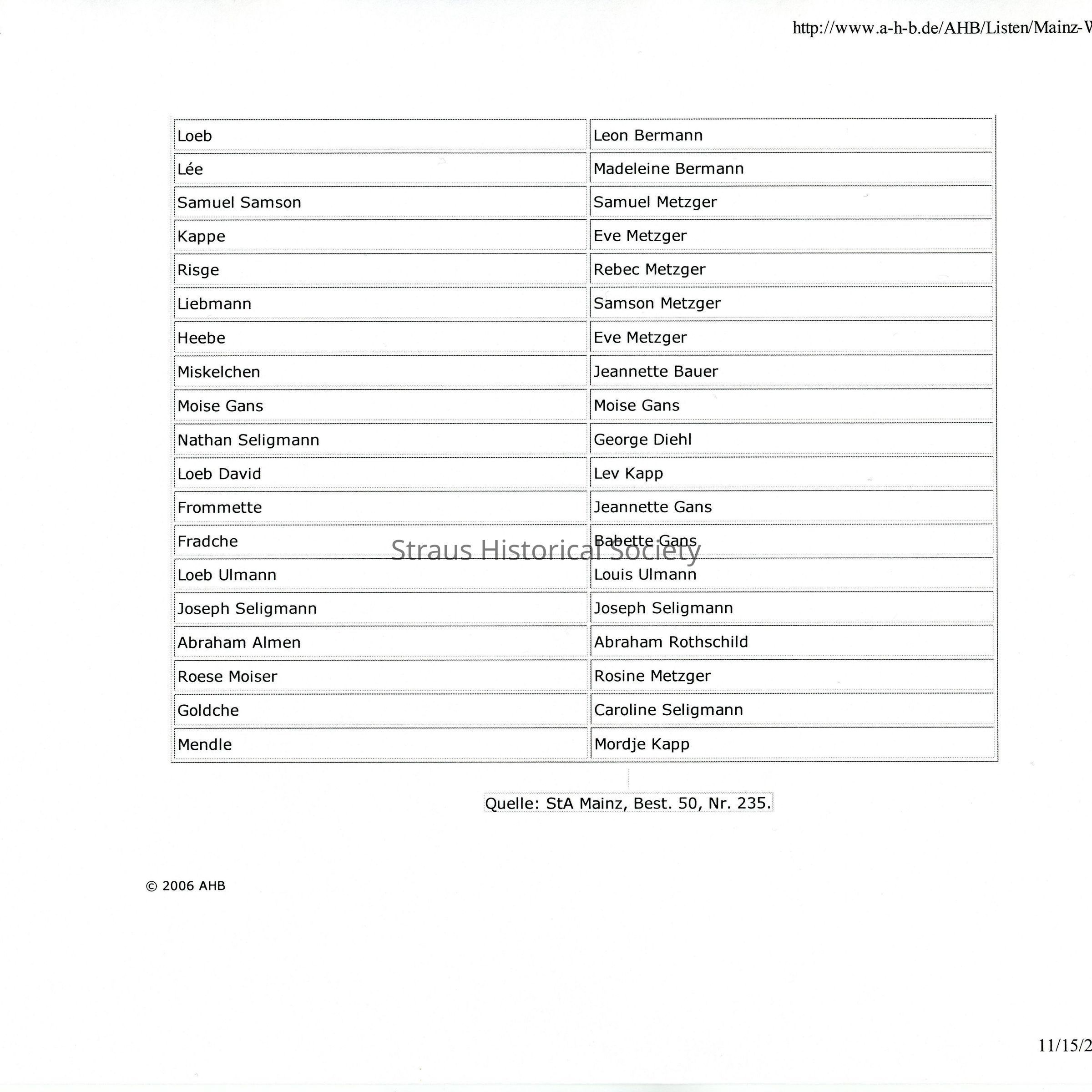 After Napoleon's Declaration of Regulating the Jews in 1808, all Jews were required to declare a last name. This entry is one of the lists of the old and new names. Several members and close relatives of the Straus family are on these lists.