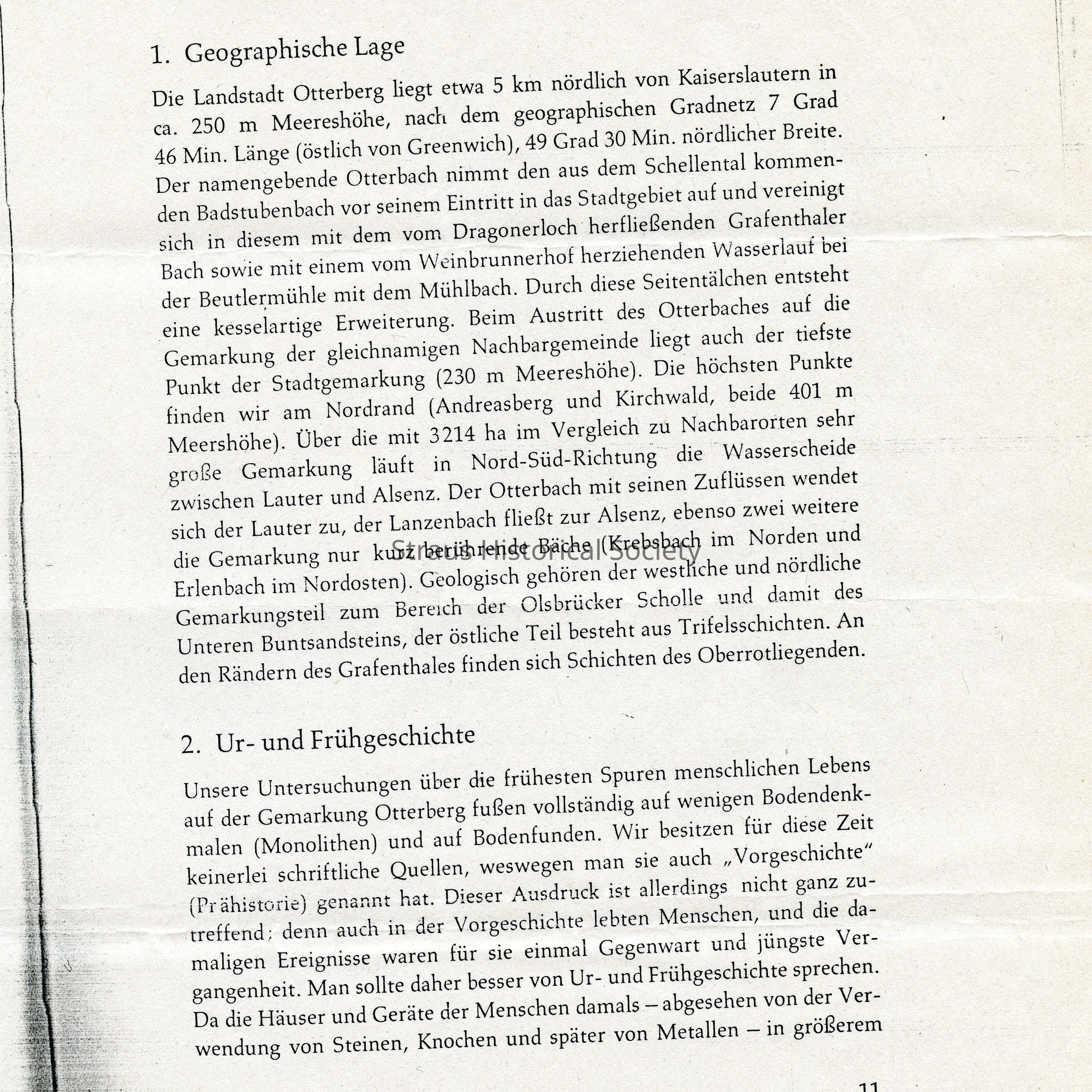 An article written in German titled, "A Die Gemarkung vor der Klostergrundung 1. Geographische Lage." Article accompanied by picture drawn by artist Siegfried Bauer, titled "auf Abteikirche."