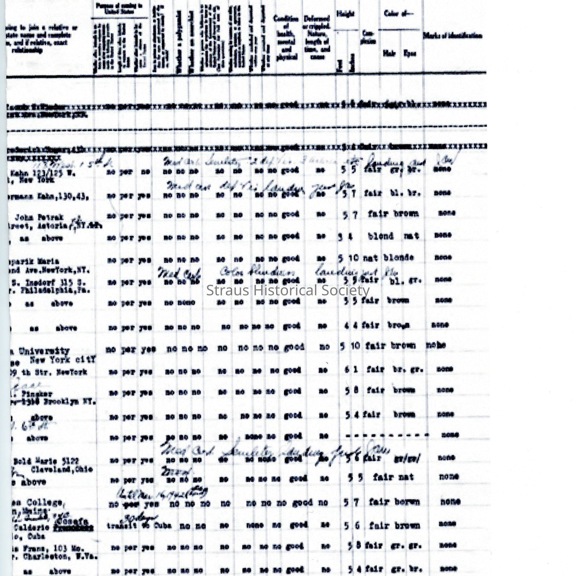 Passenger Manifest: Bernhard Auerbacher and Dina Auerbacher on "SS Rex" sailing from Genoa Italy to NY arriving on 14 March 1940. Two oversized pages.