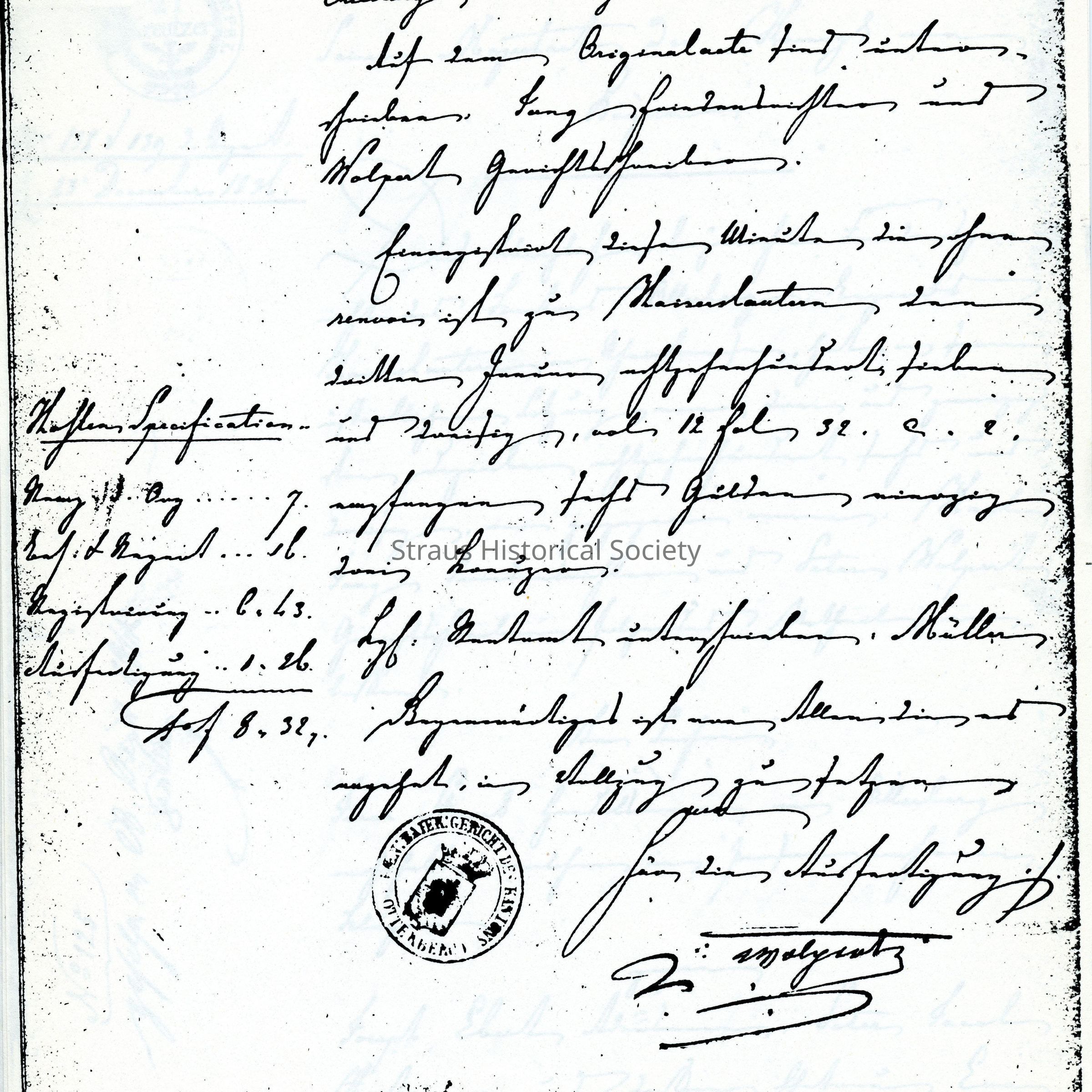 Business Paper: Im Namen Seiner Majestaet des Koenigs von Bayern. No. 125. 23 December 1836. In Old German. Not translated. Eight handwritten pages.Entry/Object ID