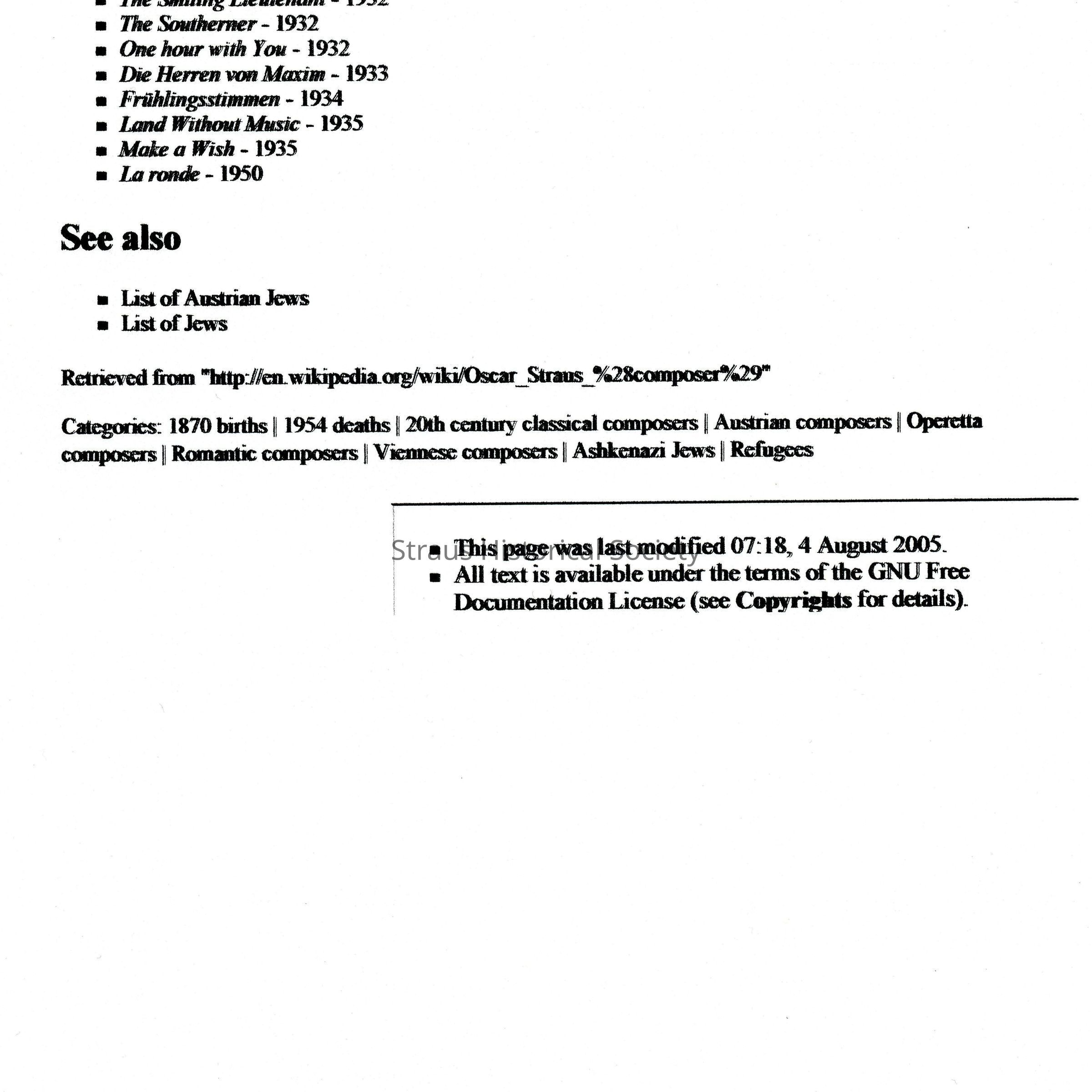 Wikipedia Article: "Oscar Straus (composer). 6 September 2005.Entry/Object ID