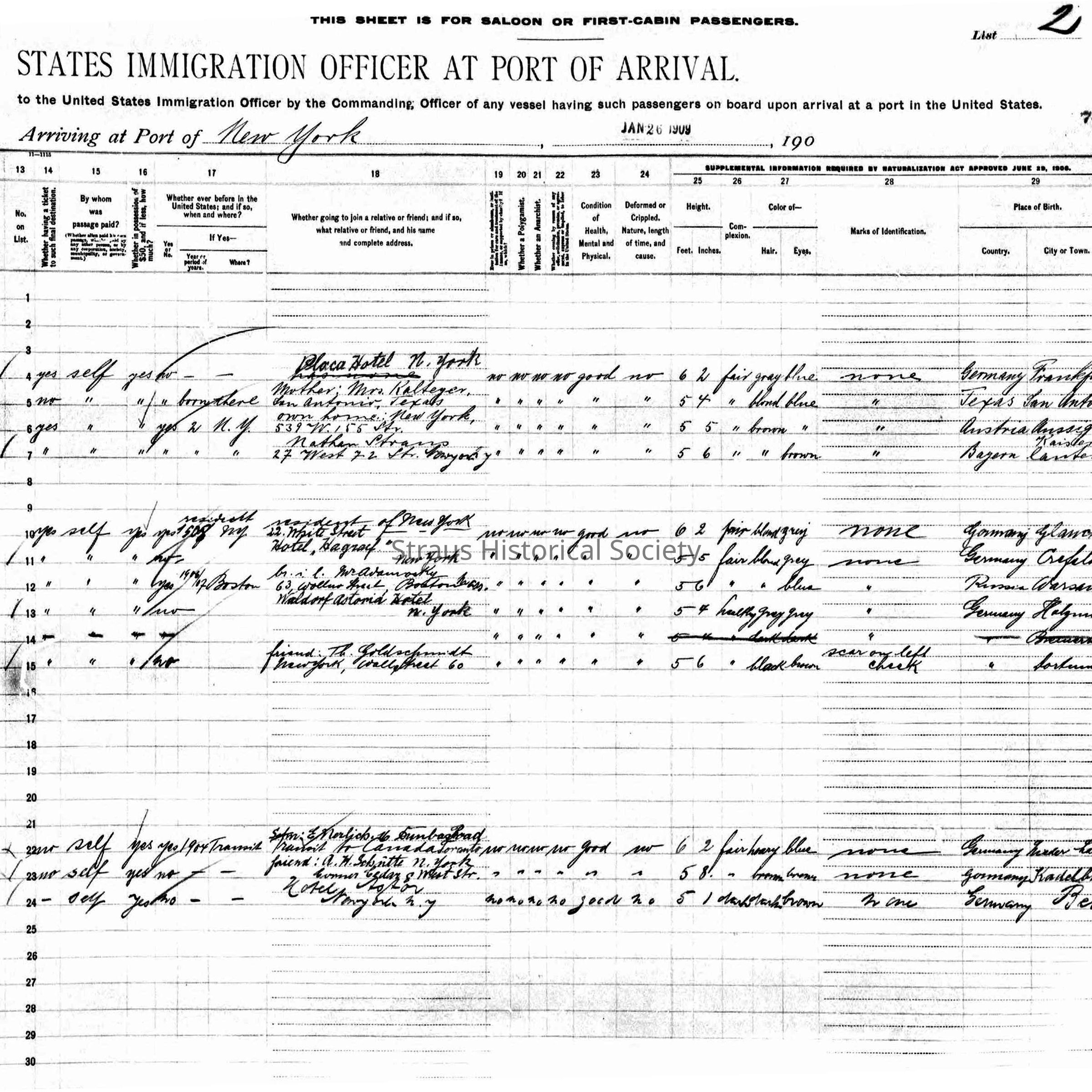 Passenger Manifest: Julius Straus, SS "Kaiser Wilhelm der Grosse," Jan. 1909.Entry/Object ID