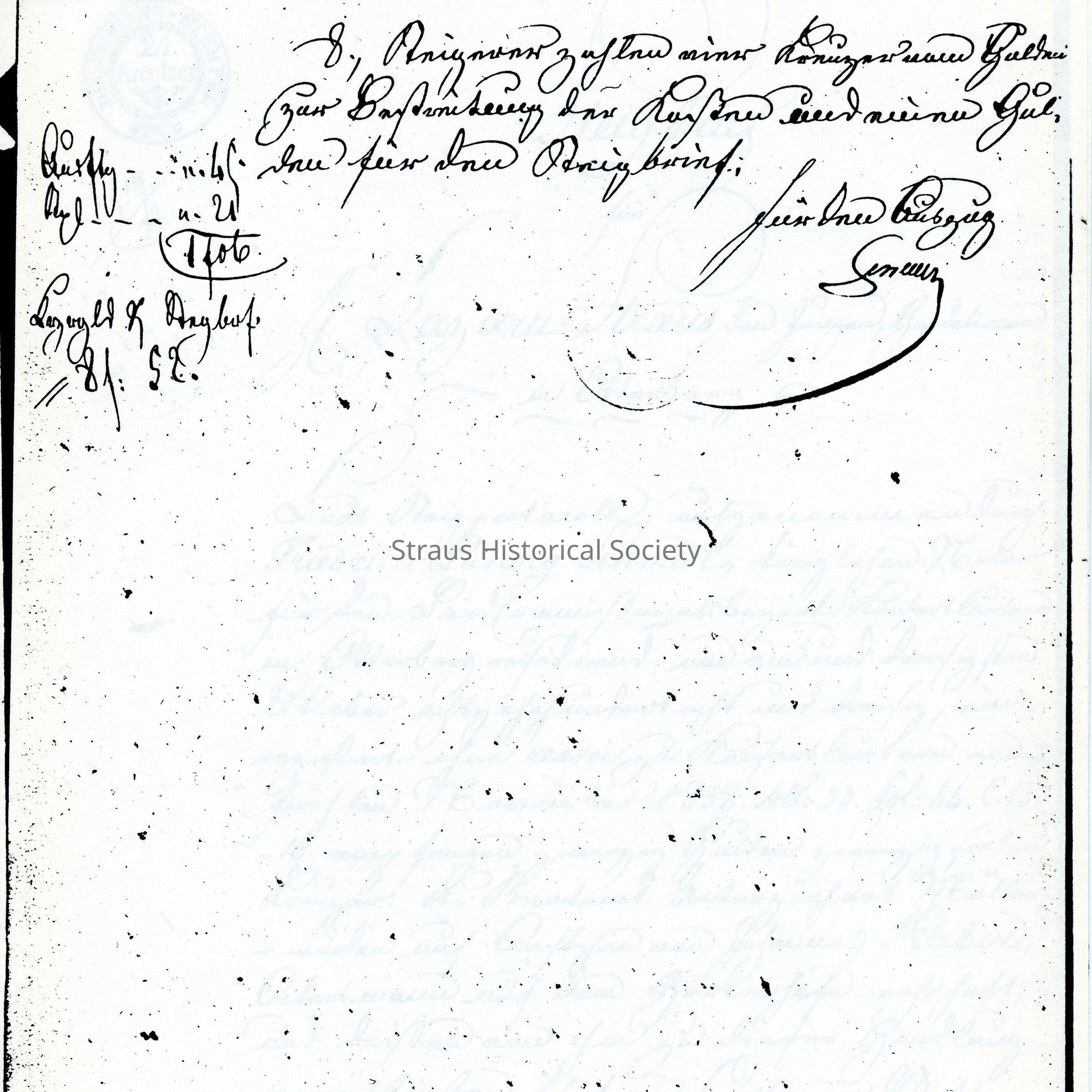 Business Paper: Steigbrief fur Lazarus Straus No. 419. 1838. In Old German. Not translated. Four handwritten pages.Entry/Object ID