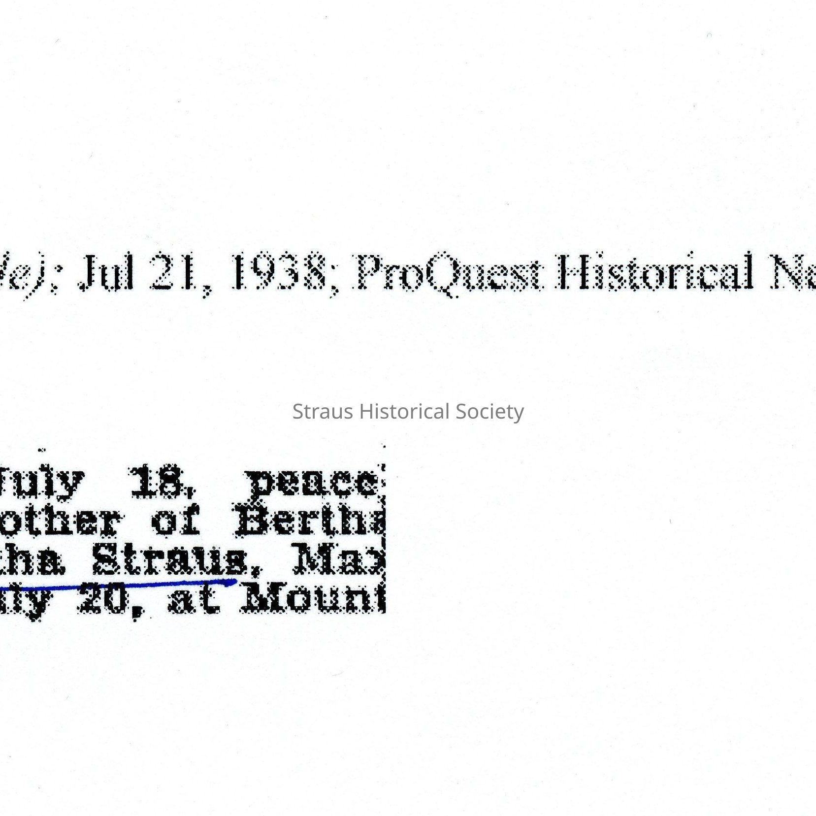 Obituary: "Landeck, Caroline," The New York Times. 21 July 1938. One column.Entry/Object ID