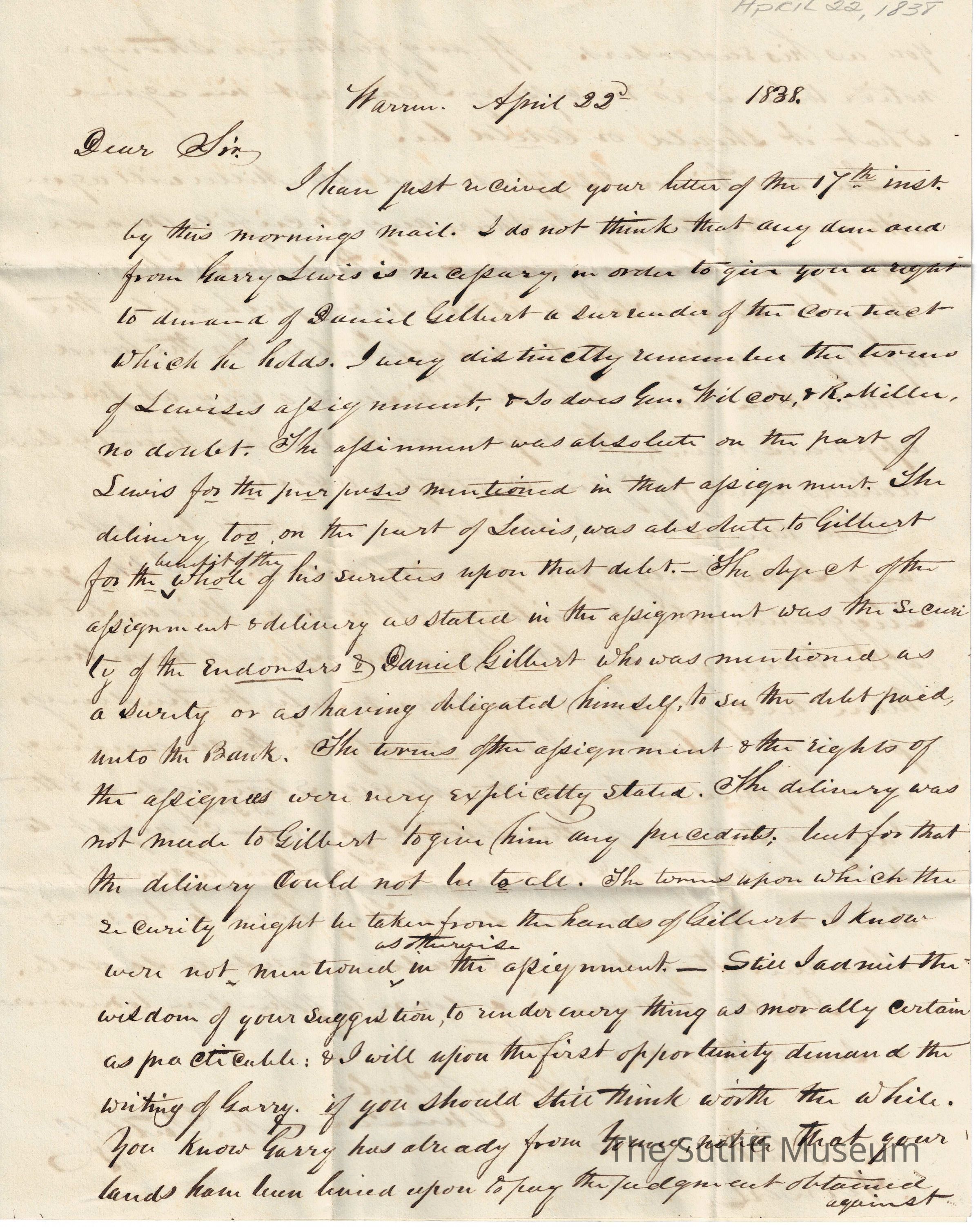 A letter from Milton Sutliff to Calvin Granger Sutliff regardingRelationships