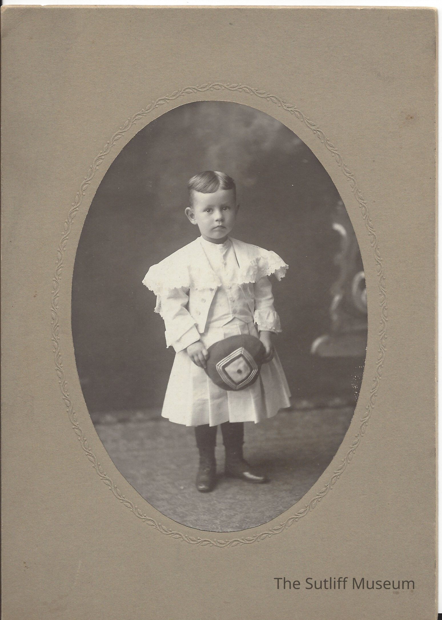 Photograph of a young Edward Sutliff Brainard in a white gown, c. 1900Collection