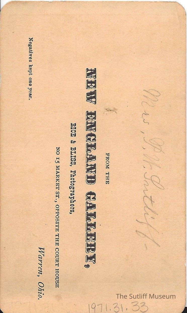 Photograph of Ella H Bennet Sutliff. Written on the back is "Mrs. PW Sutliff"