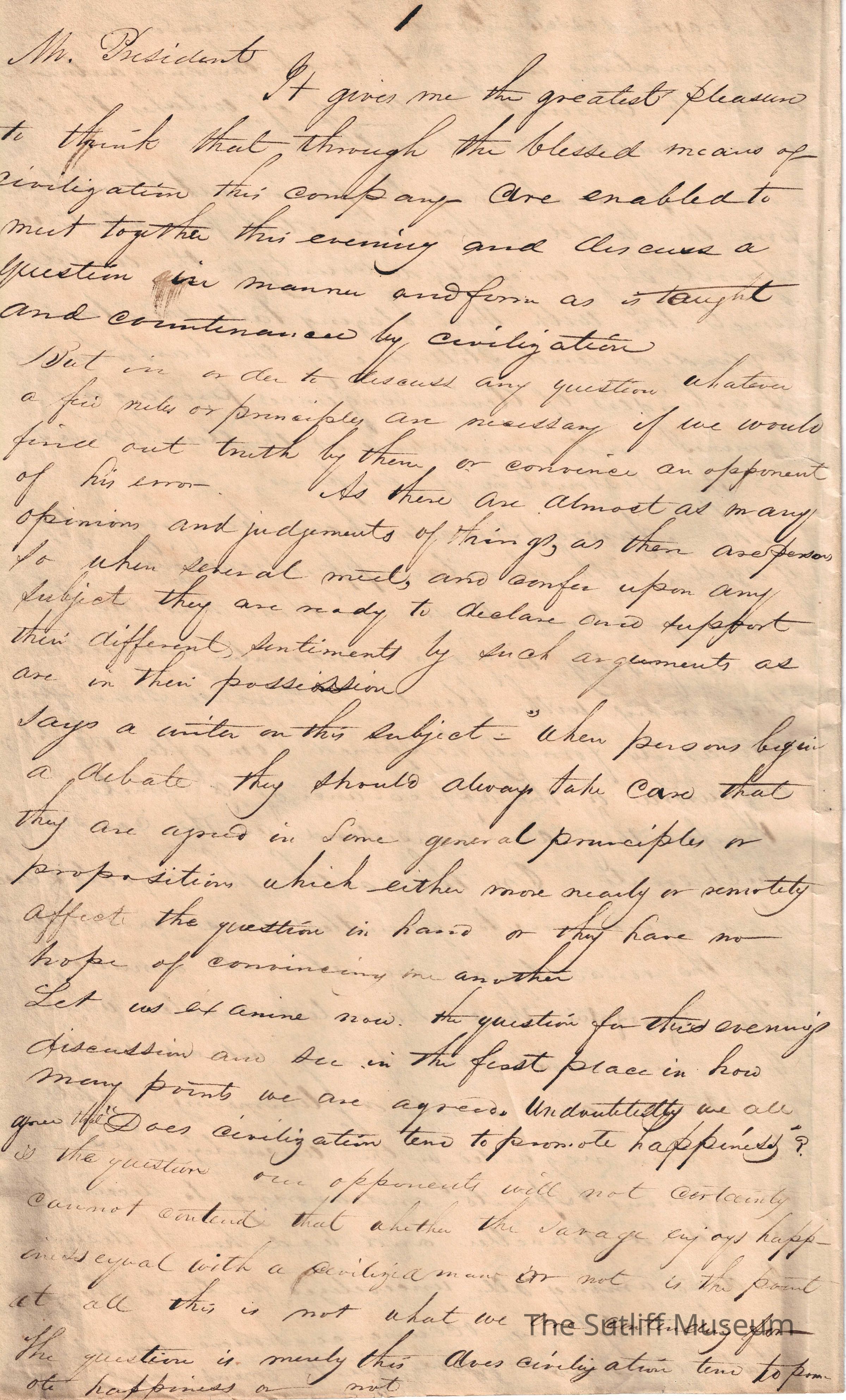 A document addressed to "Mr. President" regarding the opinions and judgments of civilization.