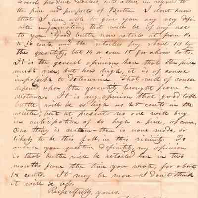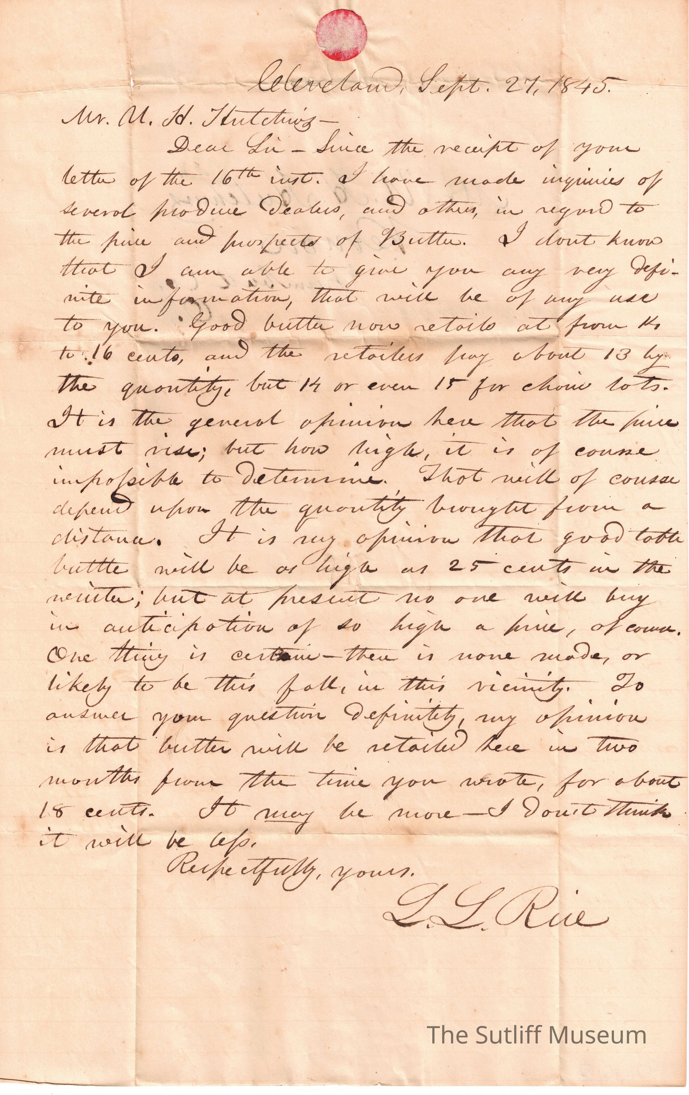 A letter from L.L. Rice to N.H. Hutchins responding to questions regarding his product and produce pricing and whether he'll be able to sell any to Hutchins.Relationships