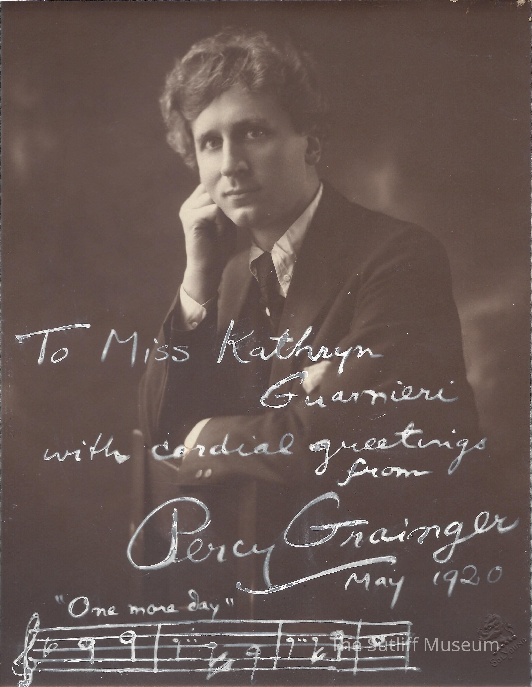 "To Miss Kathryn Guarnieri with cordial greetings from Percy Grainger