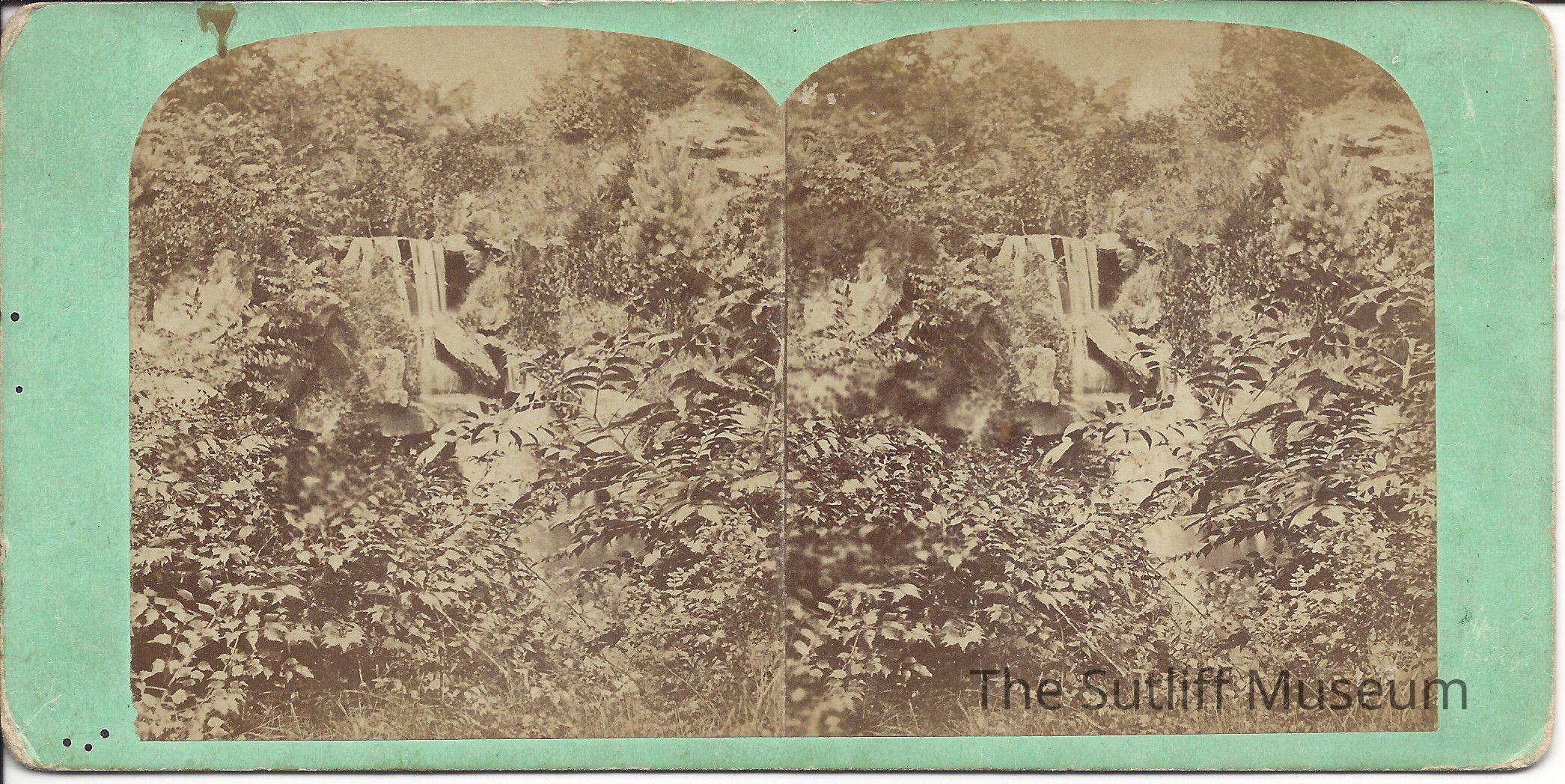 Two images depicting a water fall and greenery in Central Park, NY. Reverse has a list of places in NY with the subject of the current photo underlined in blue. Top states "Central Park, N.Y. Second Series 1868"Collection