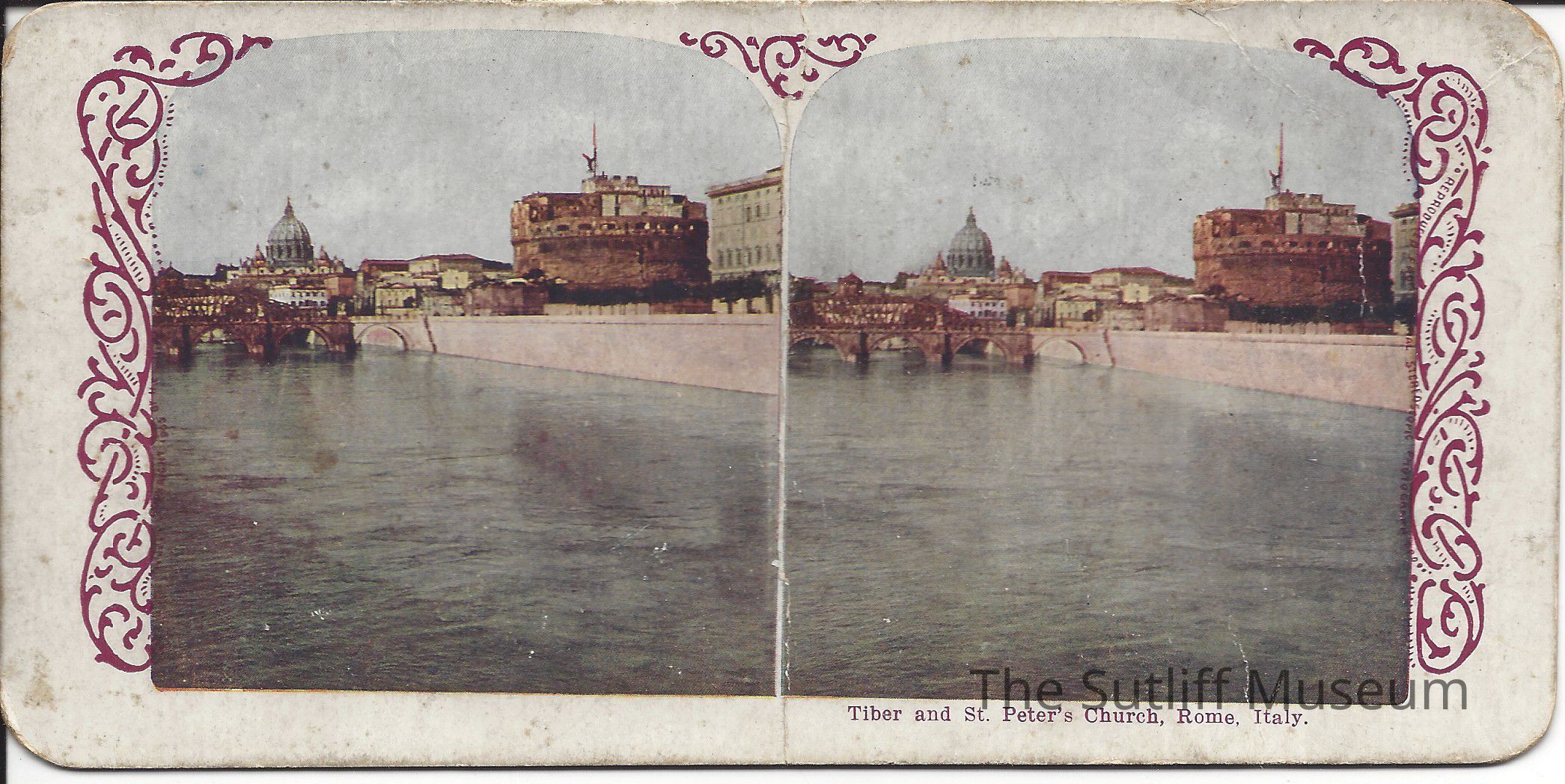 Stereograph Card: Tiber and St. Peter's Church, Romes, Italy.