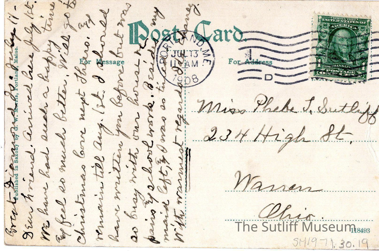 Postcard to Phebe T. Sutliff from Ida ChaneyEntry/Object ID