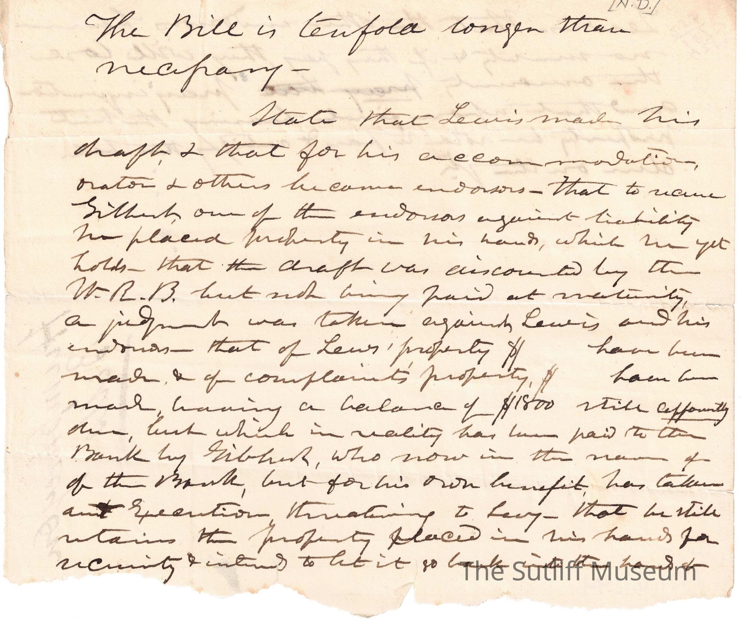 A note declaring Levi has made a draft for a bill that is longer than expected.