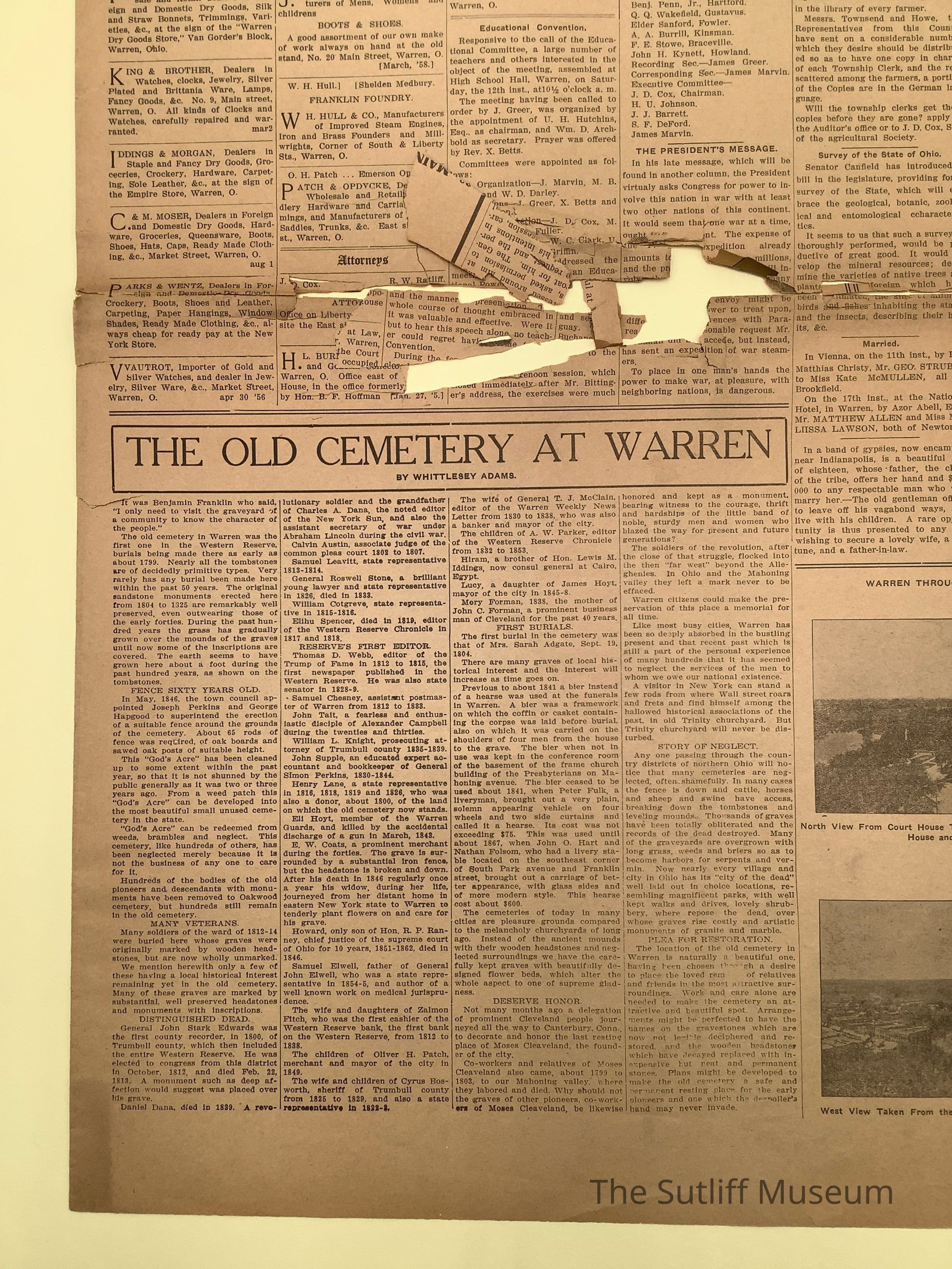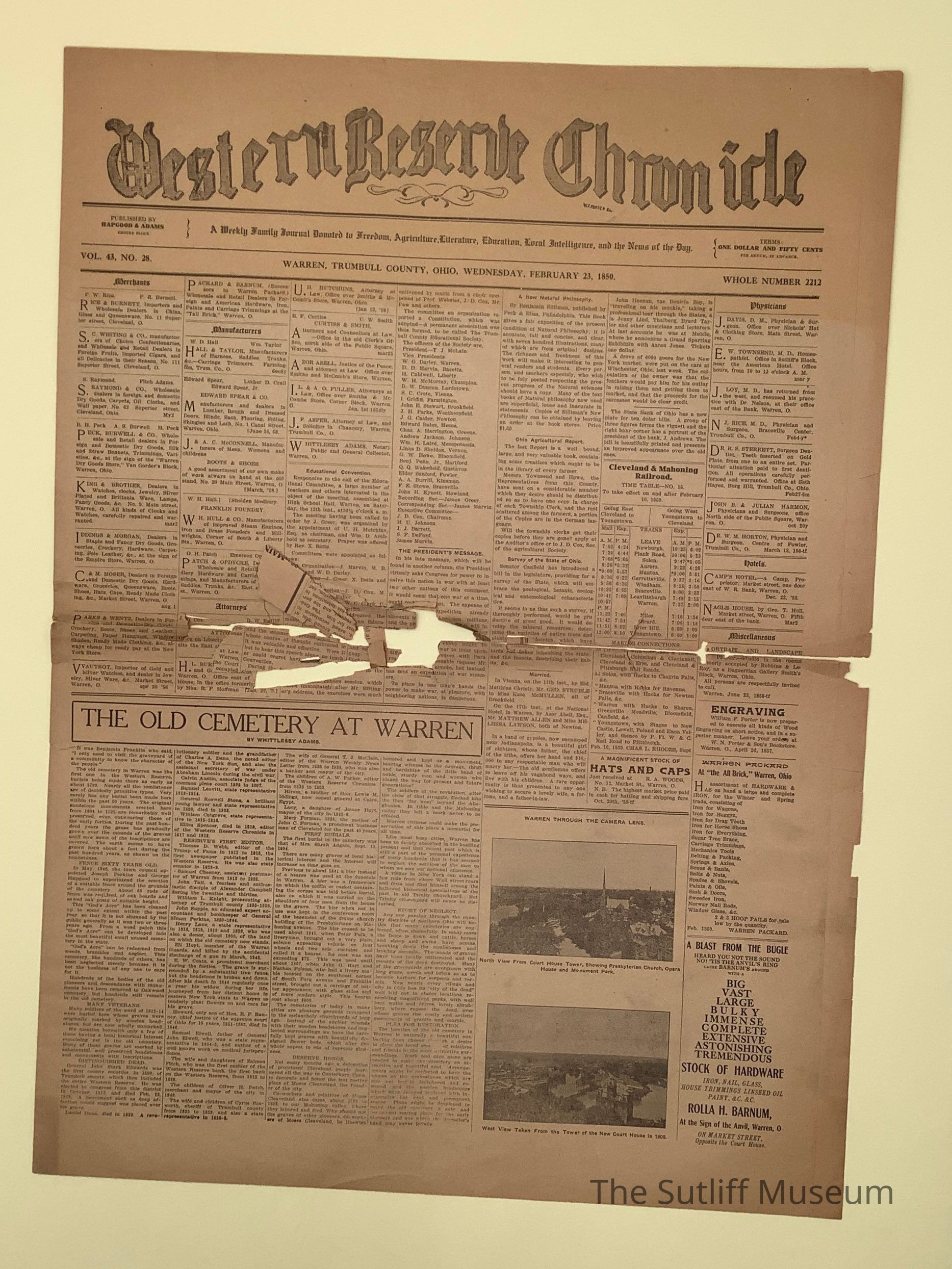 Western Reserve Chronicle newspaper published on February 23, 1850. This edition discusses The Old Cemetery (Pioneer Cemetery/Old Mahoning Cemetery) in Warren.Relationships