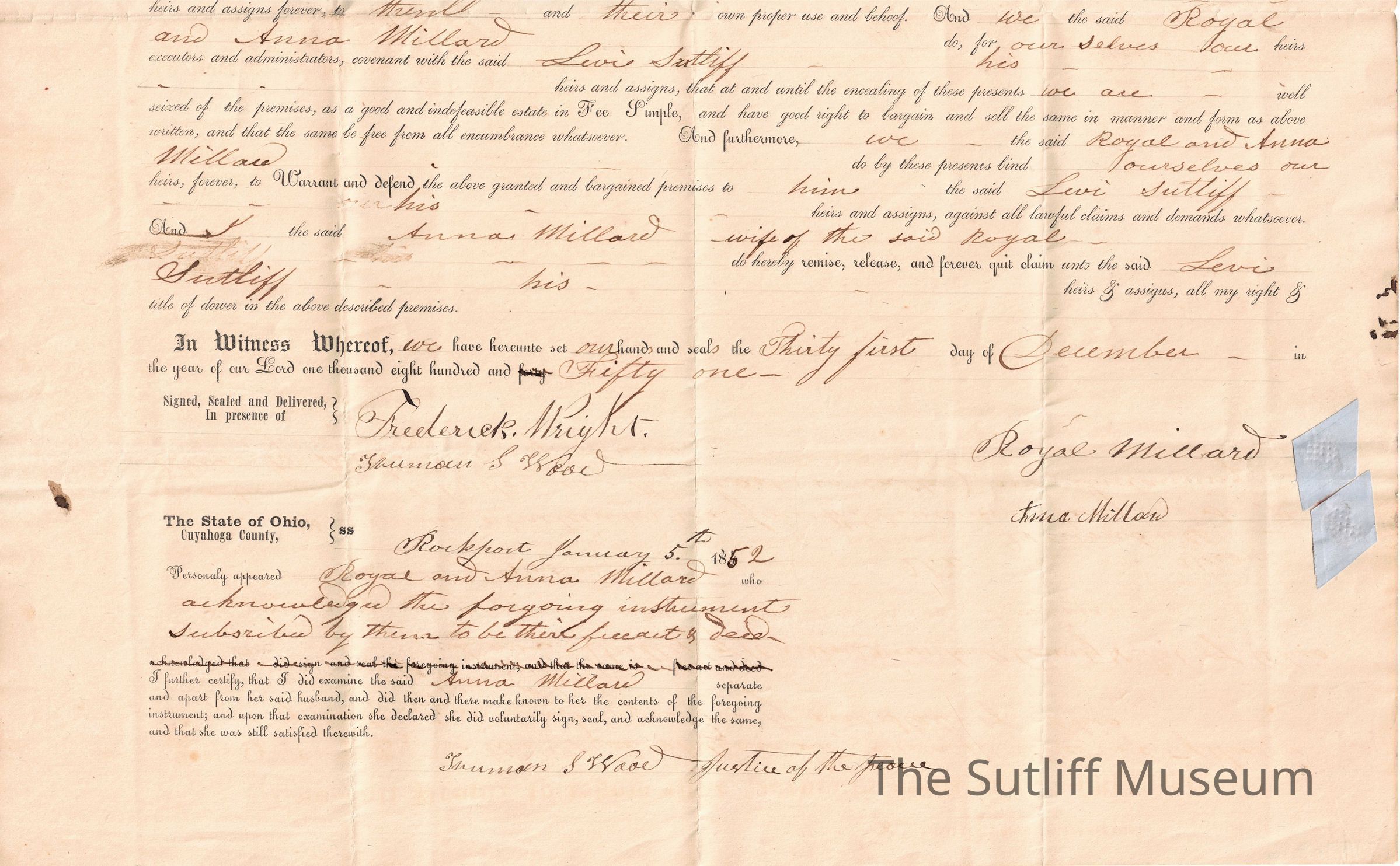 Land transfer between Royal and Anna Millard and Levi Sutliff.Relationships