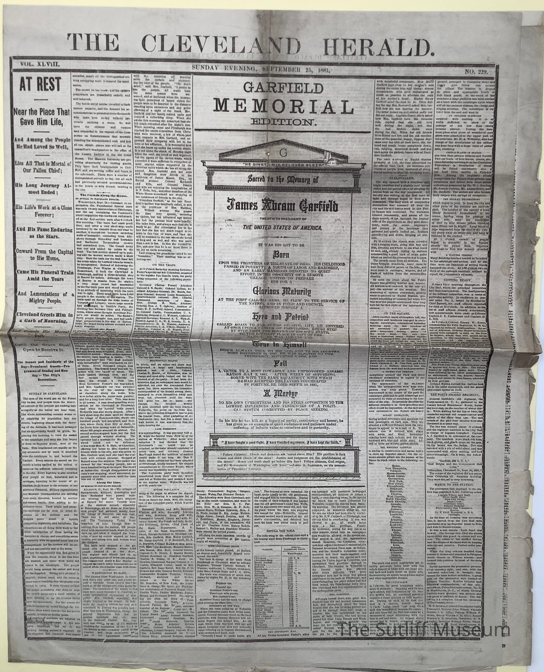 The Cleveland Herald newspaper, published September 25, 1881.Collection