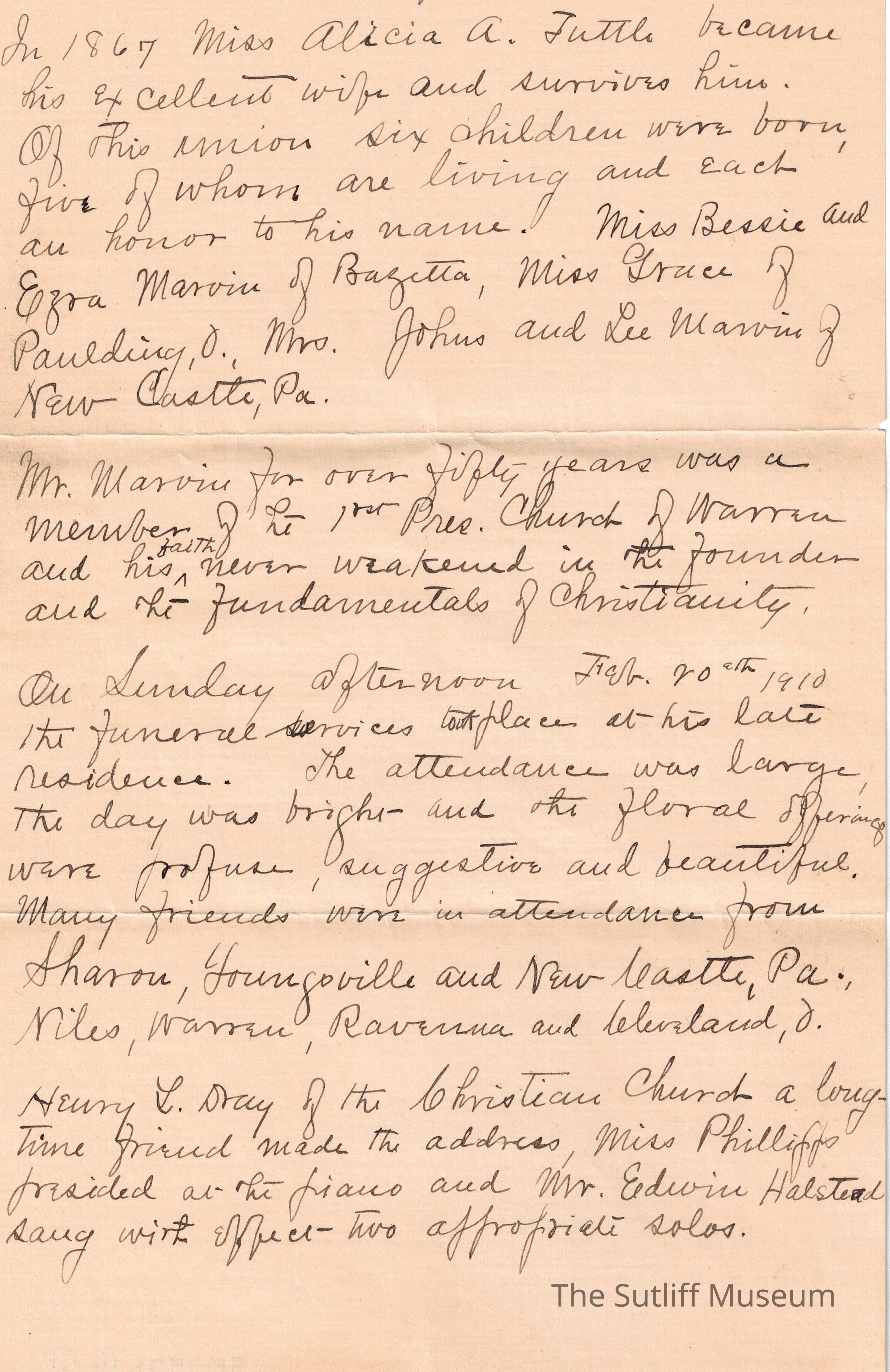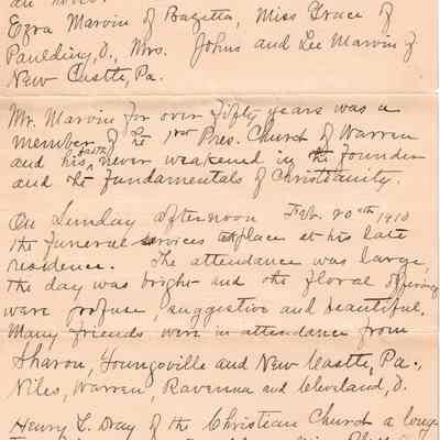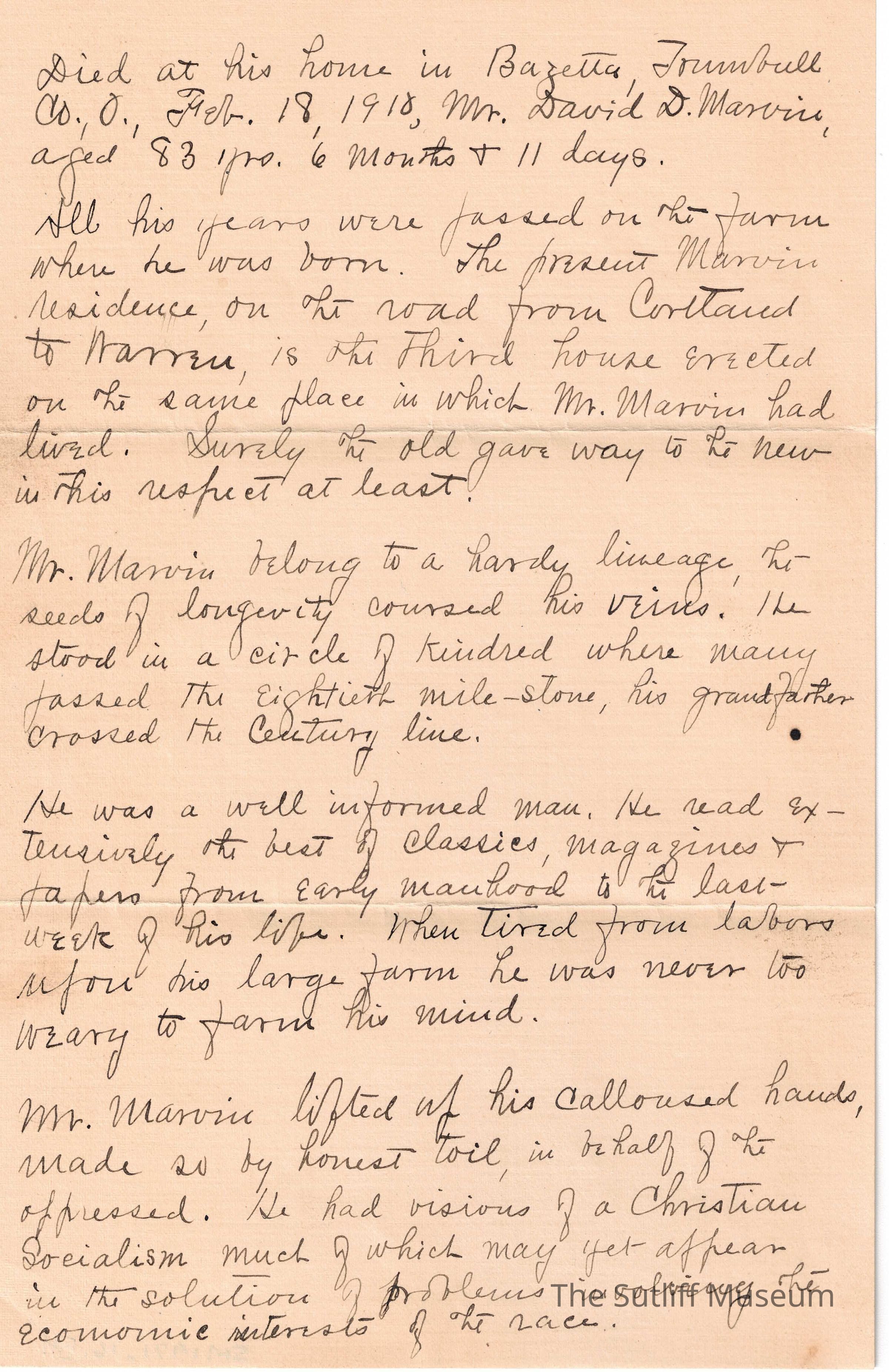 Written updates about various members of the Marvin family, including the death date of Mr. David D. Marvin.Relationships