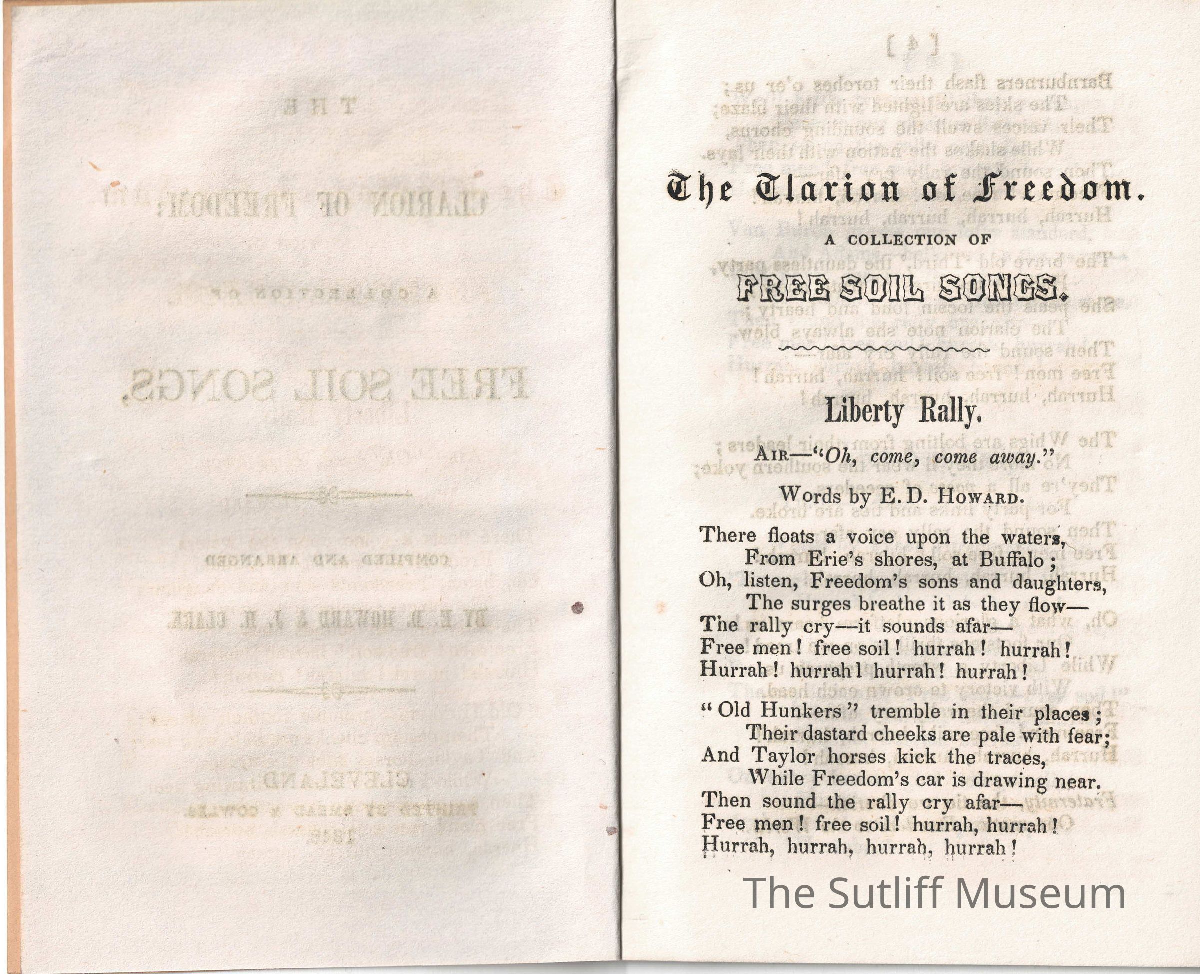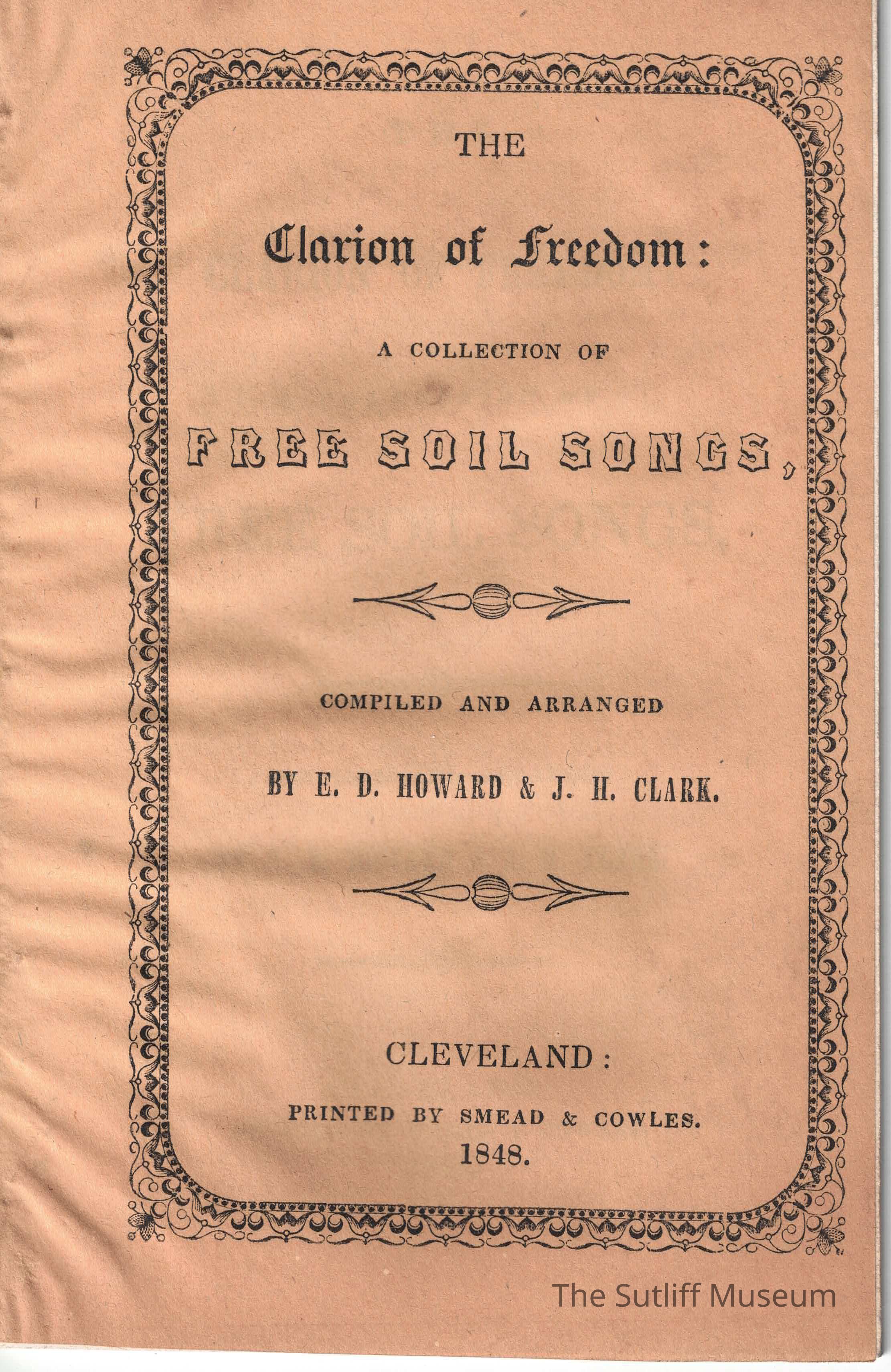 "A Collection of Free Soil Songs, Compiled and Arranged by E.D. Howard & J.H. Clark." created in Cleveland in 1848.