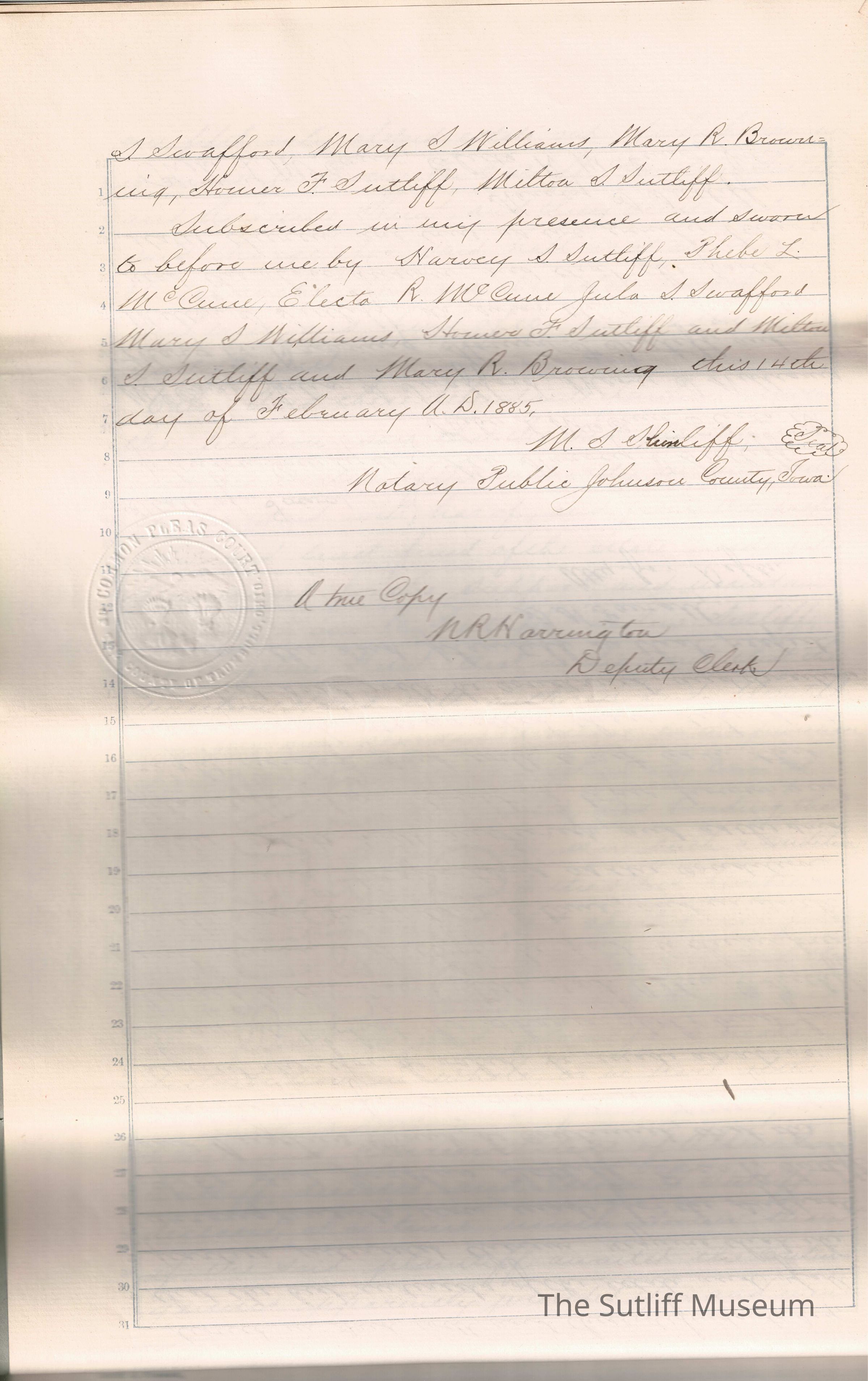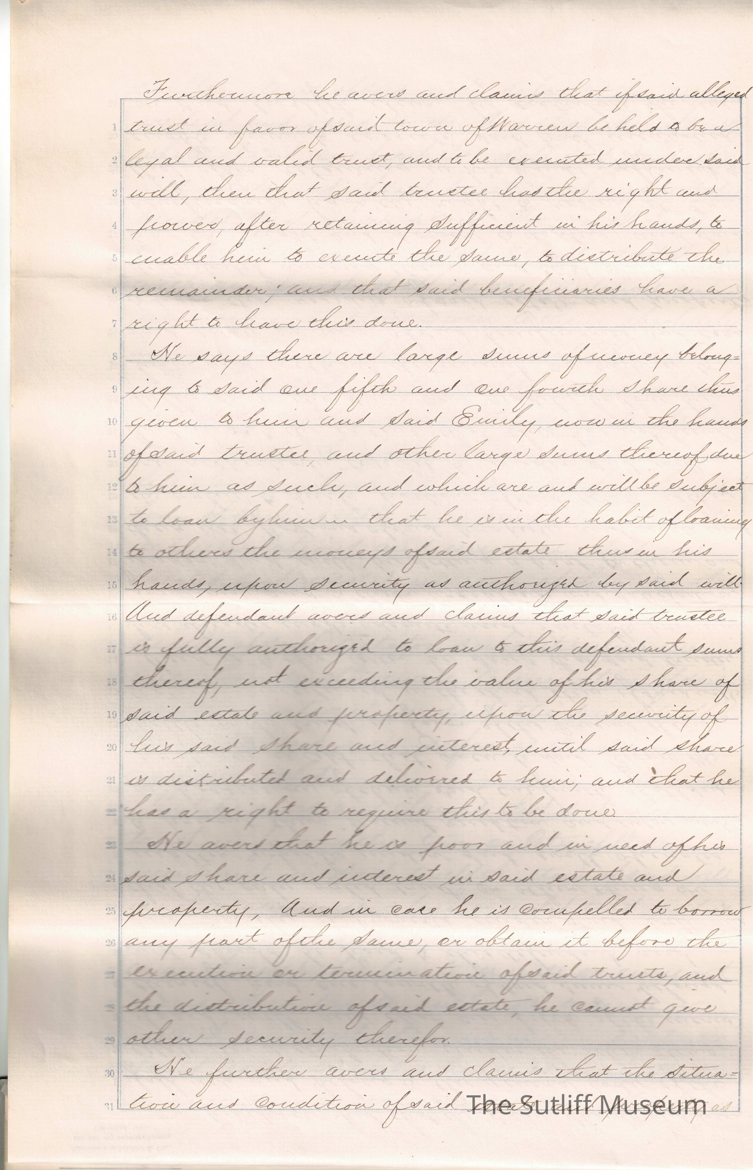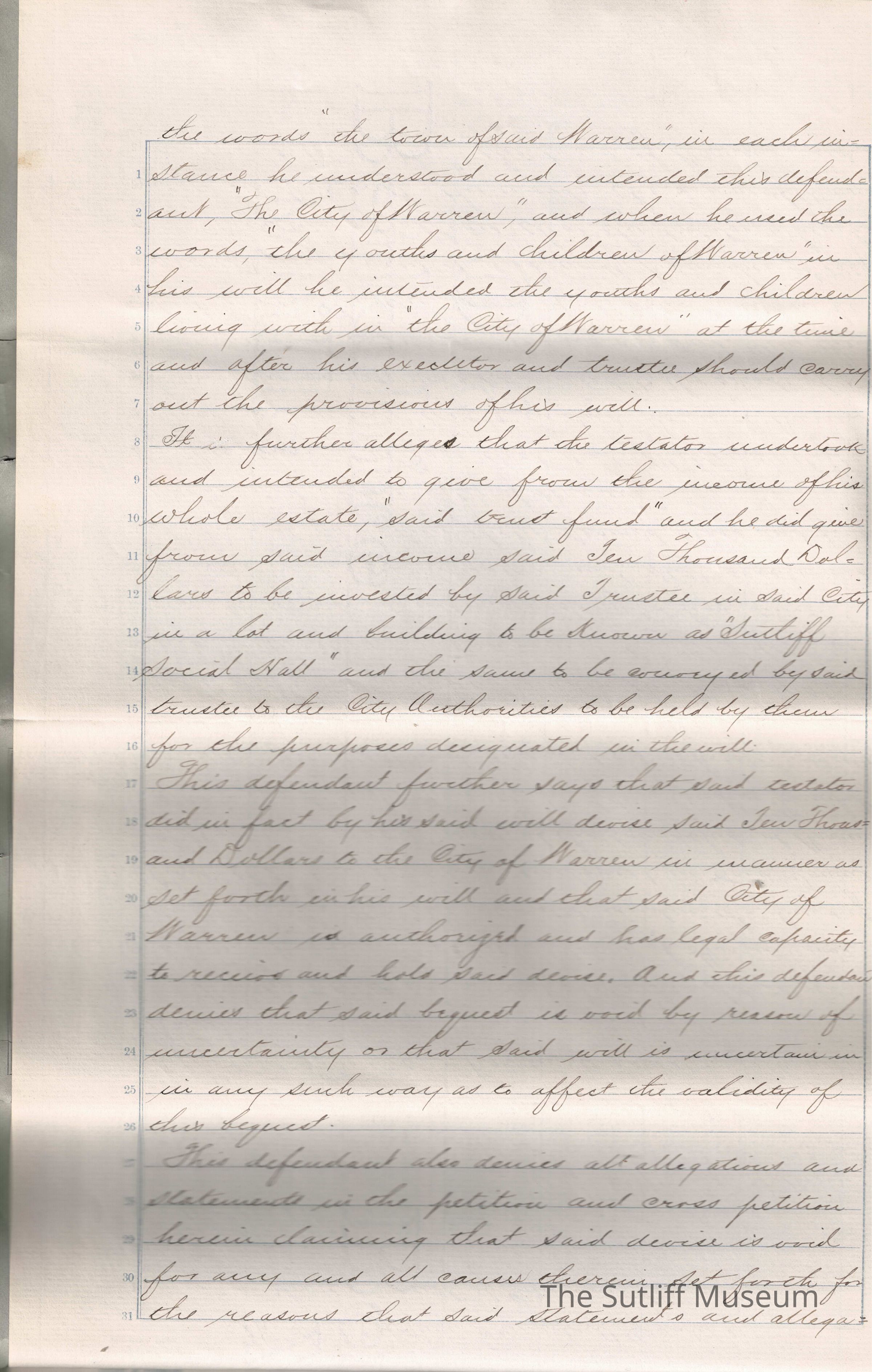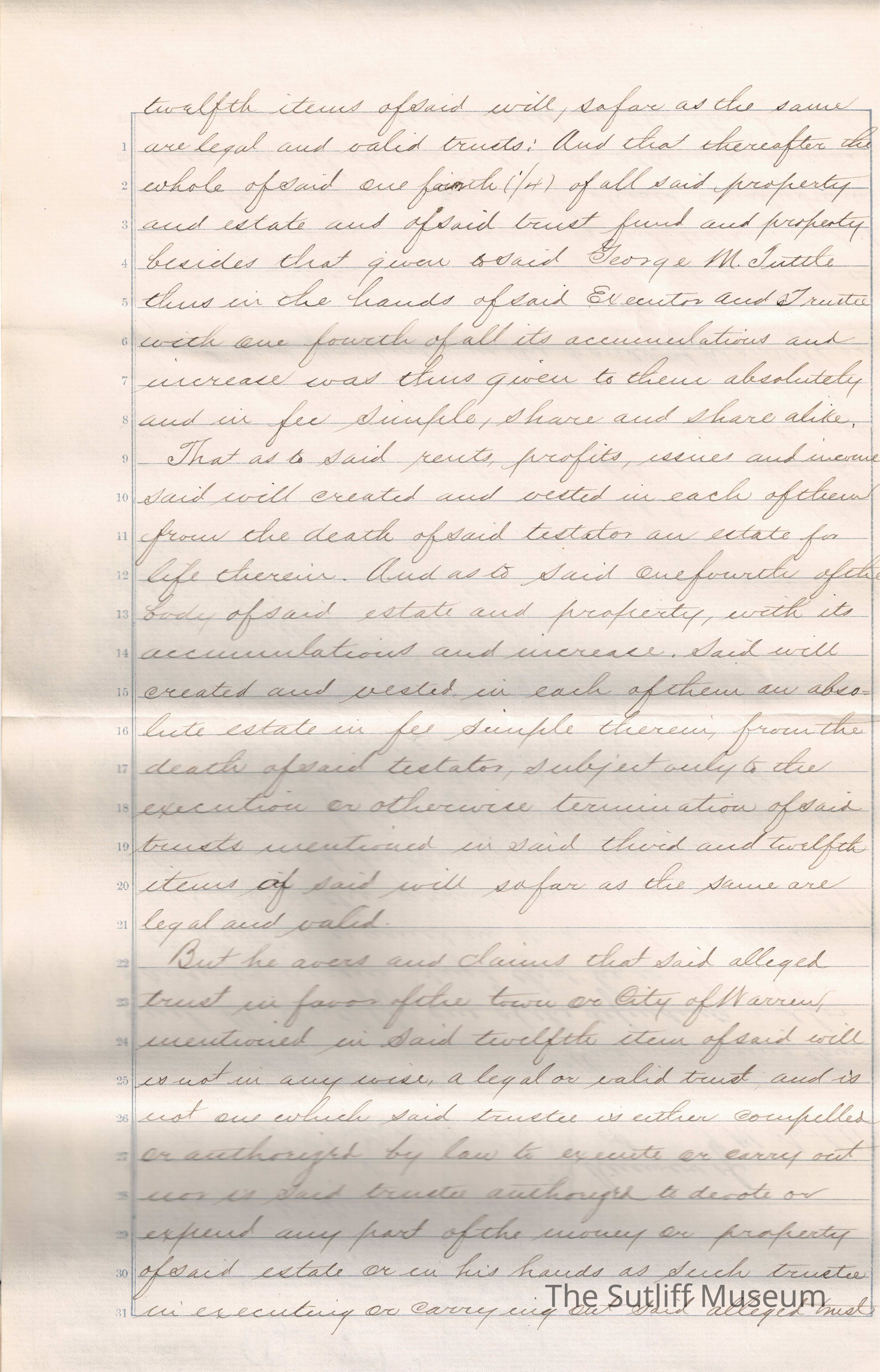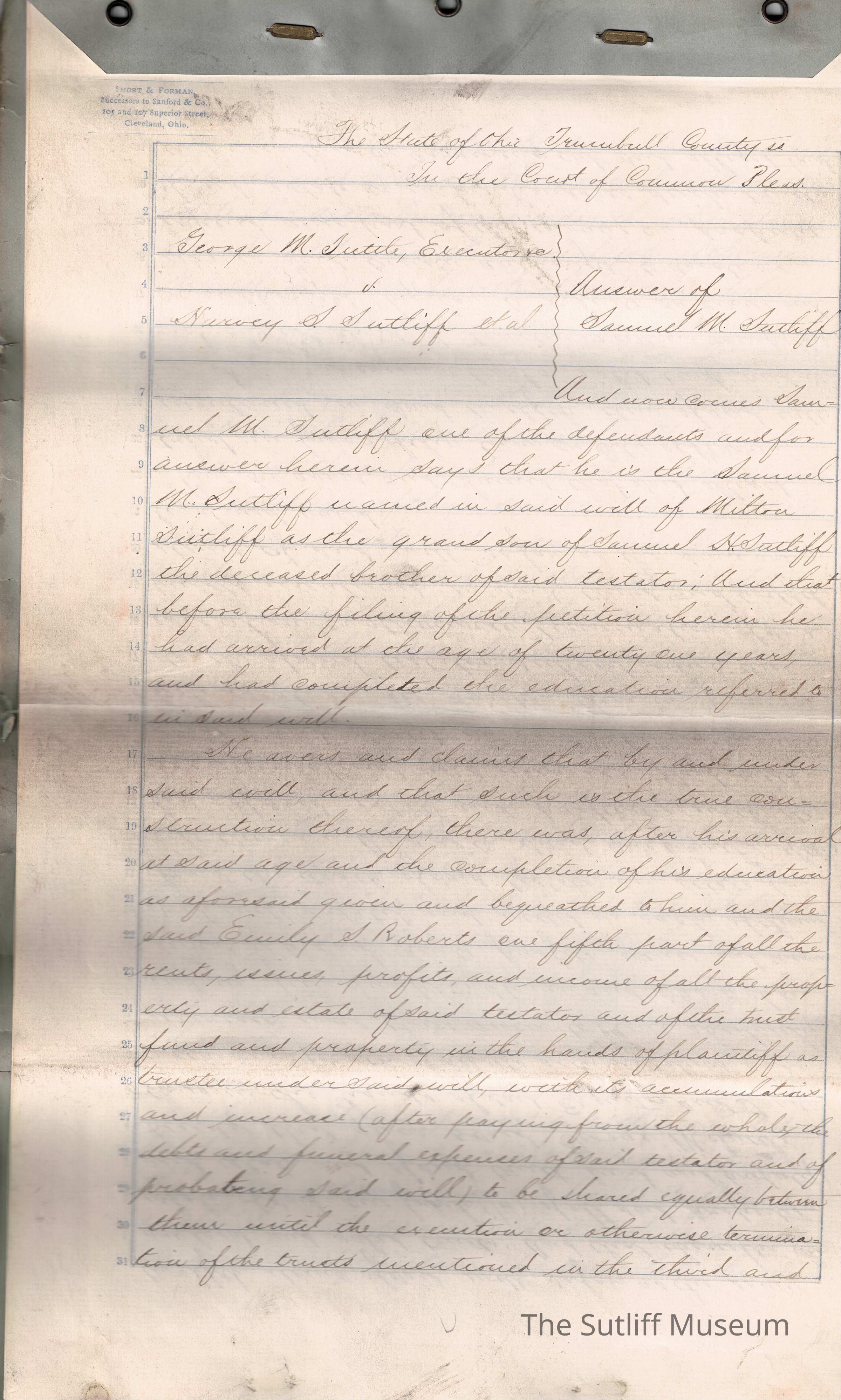 A copy of the legal case of George M. Tuttle vs Harvey Samuel Sutliff et al regarding a contestation of Milton Sutliff's will. Included is three different records.Collection