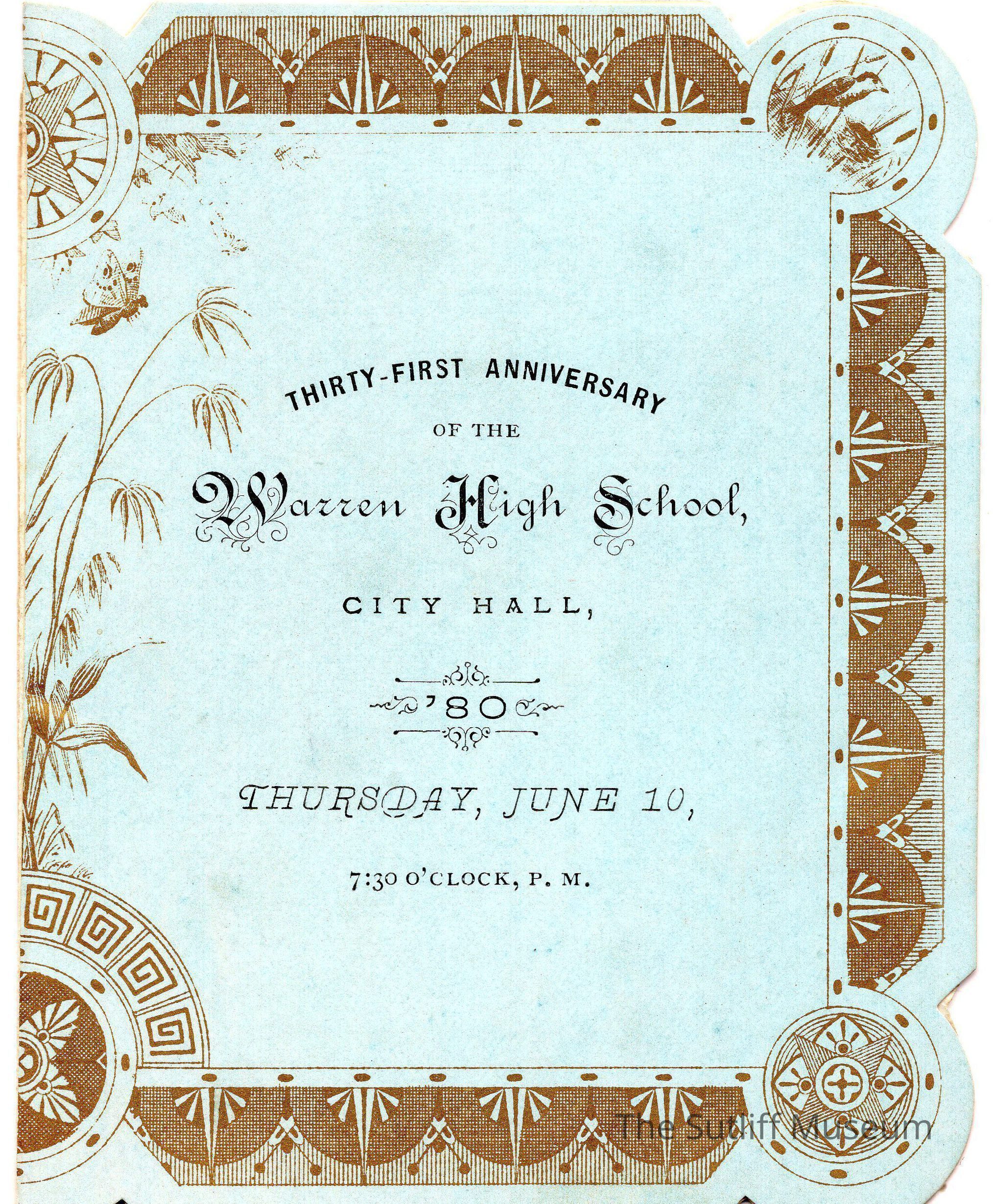 A program for the 31st Anniversary of the Warren High School to be held June 10 at 7:30 P.M.