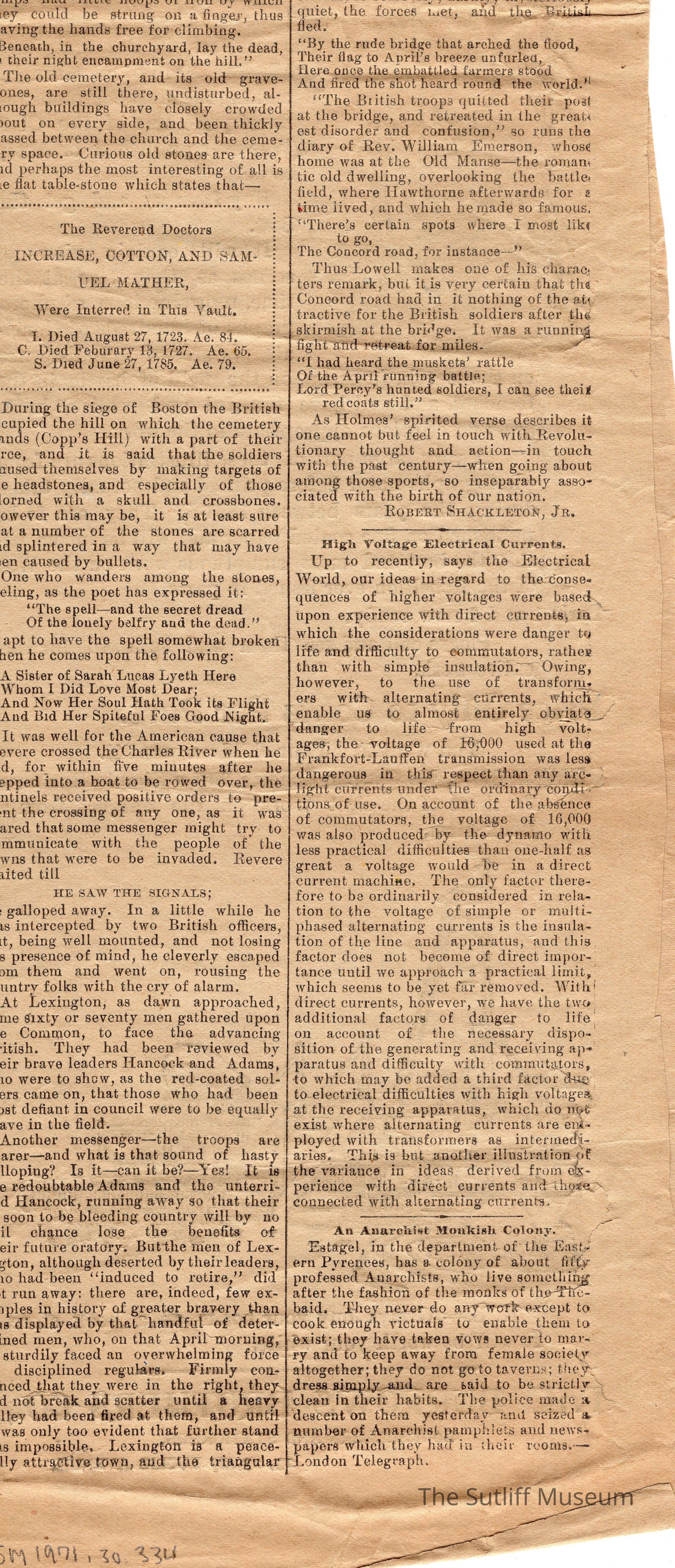 Newspaper clipping with an article about "Memories of Lexington"Collection