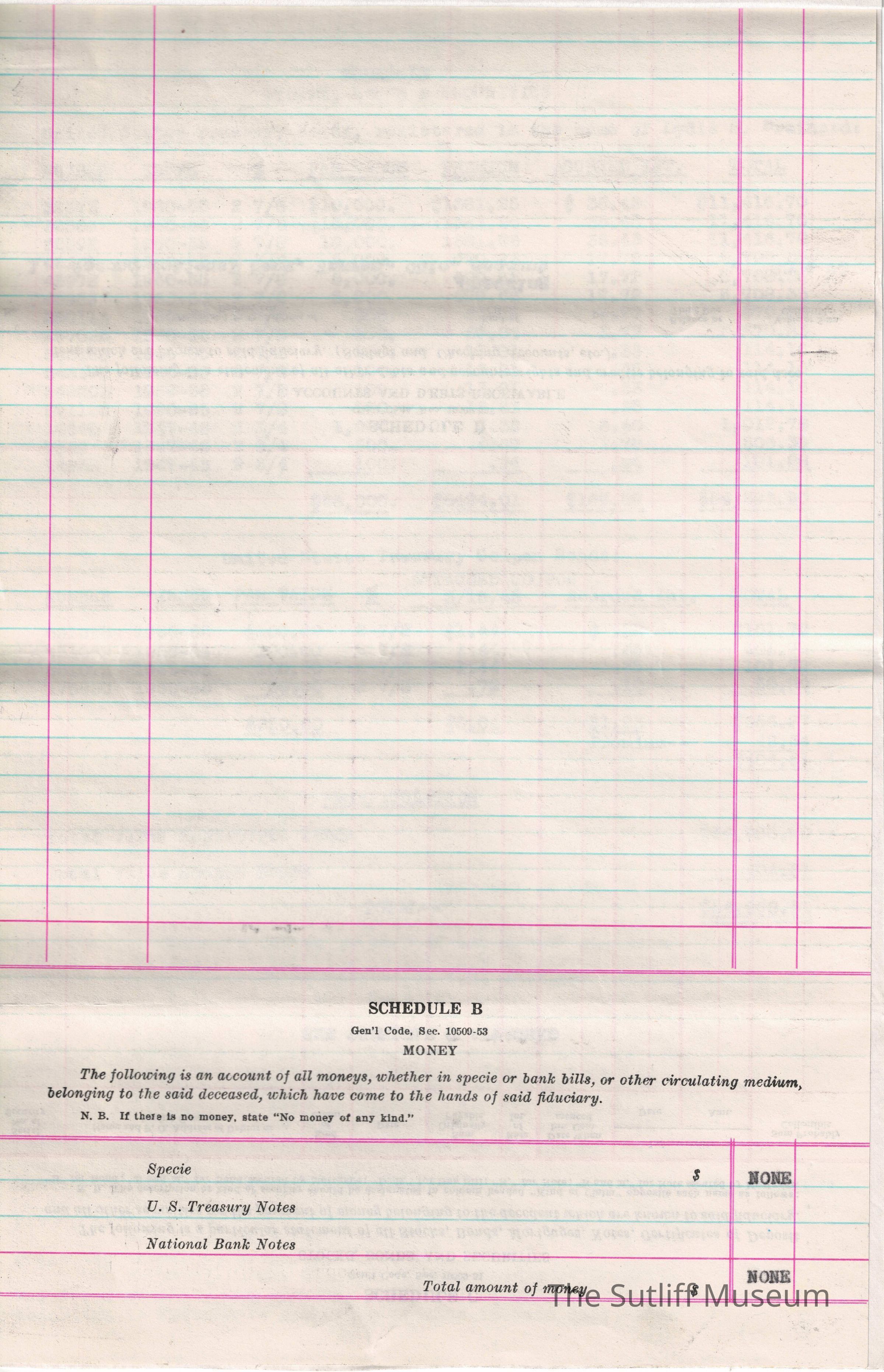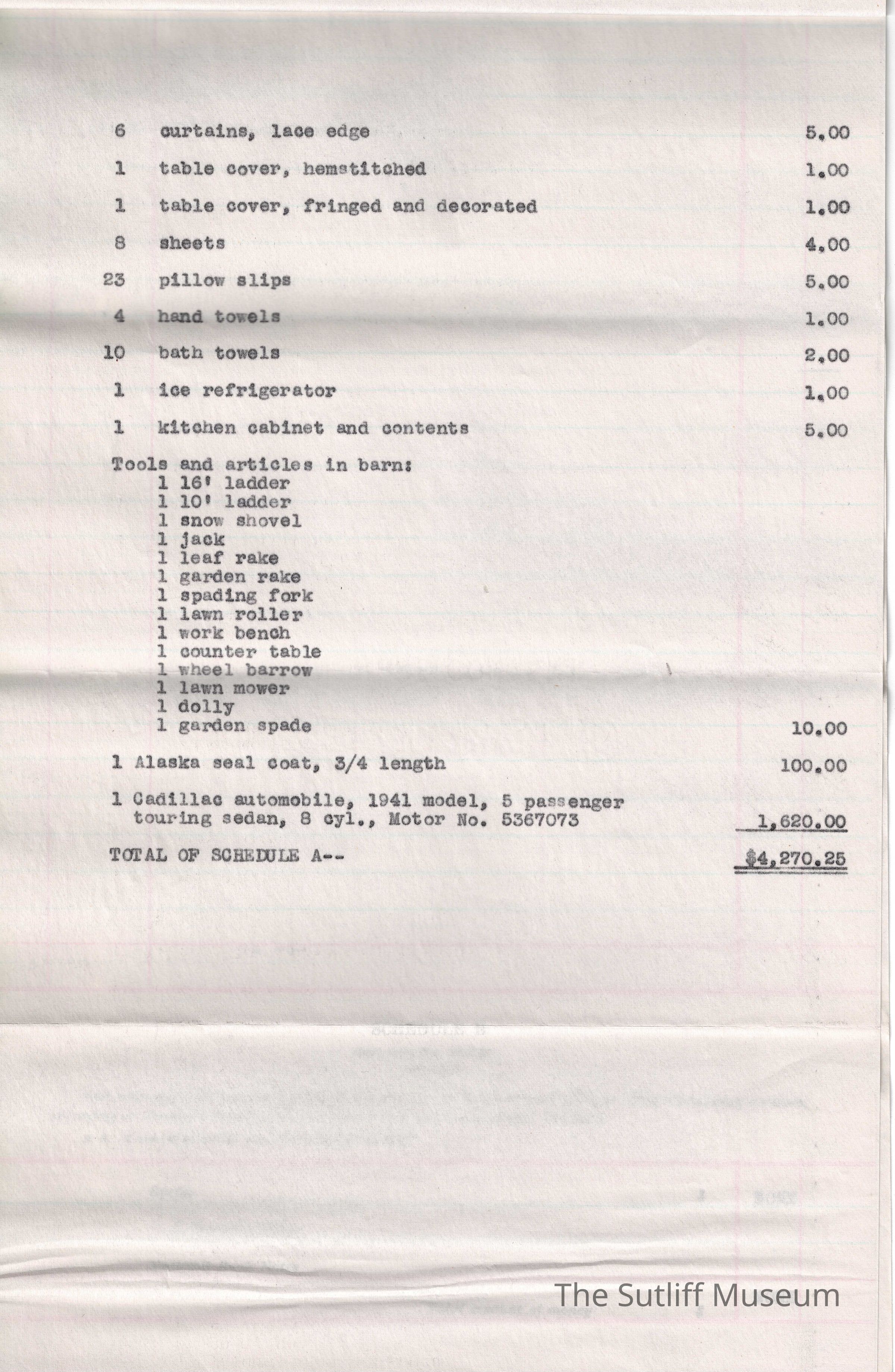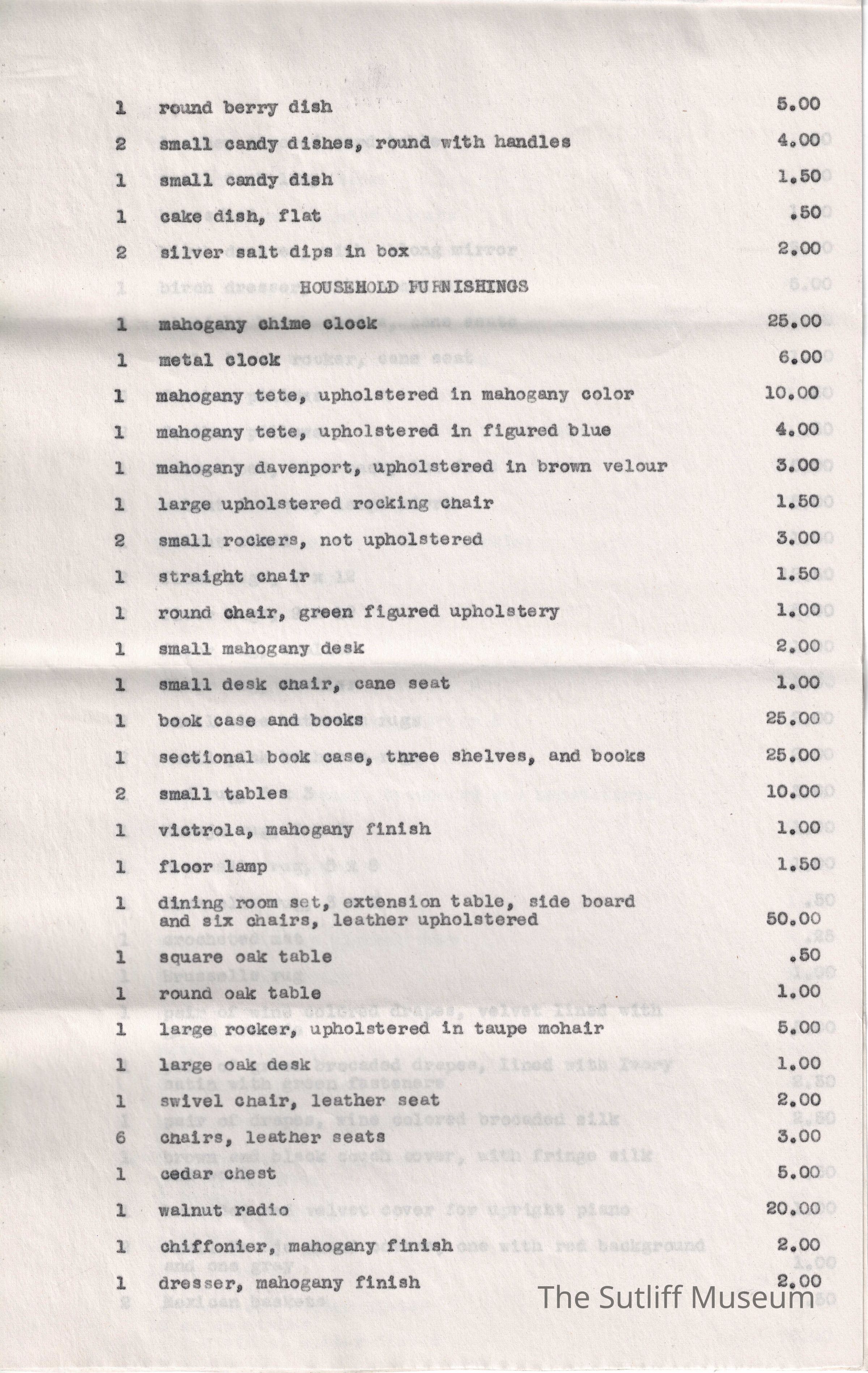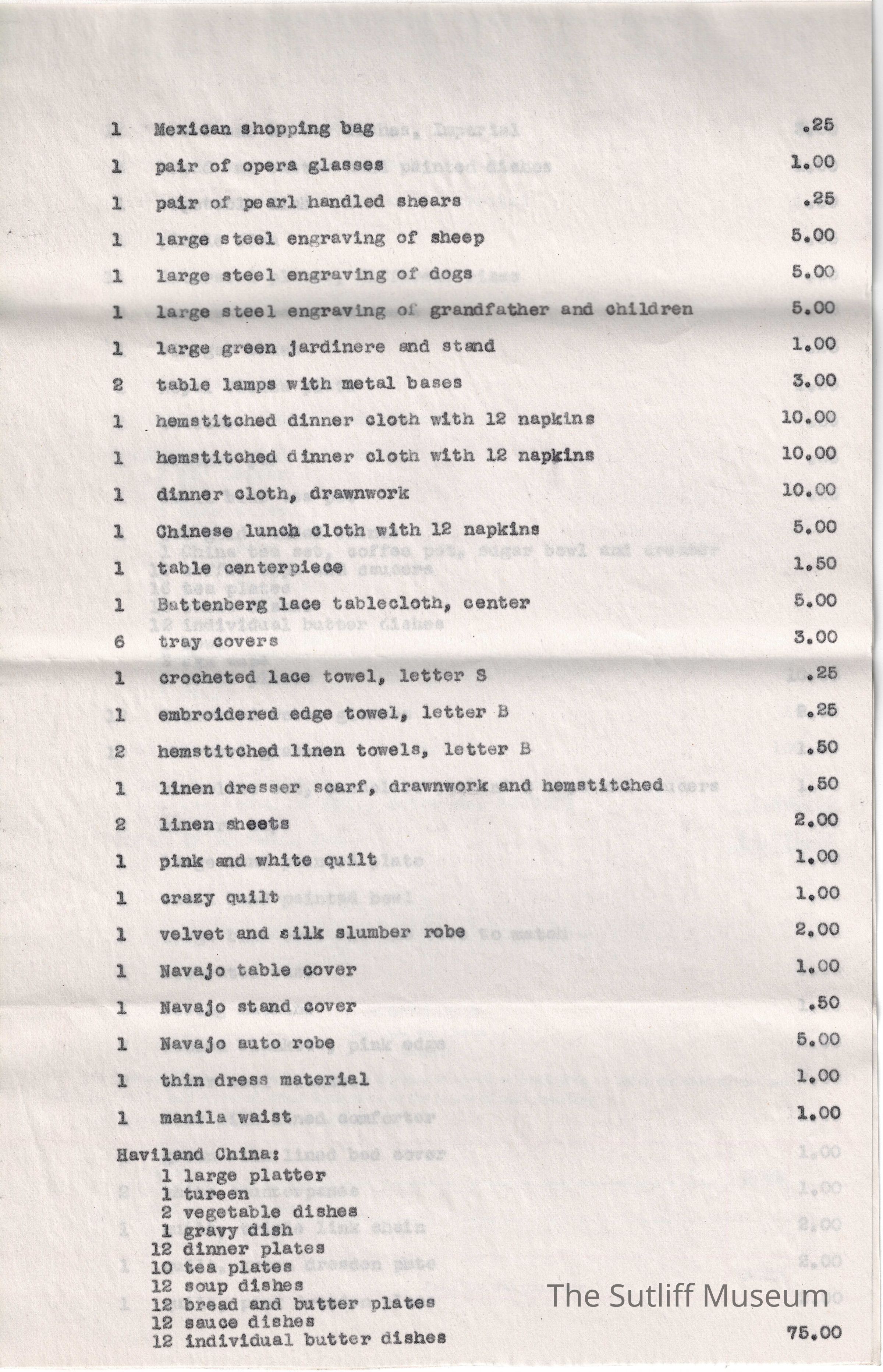 A record of the Estate of Lydia Sutliff Brainard. An inventory and appraisal of her belongings.
