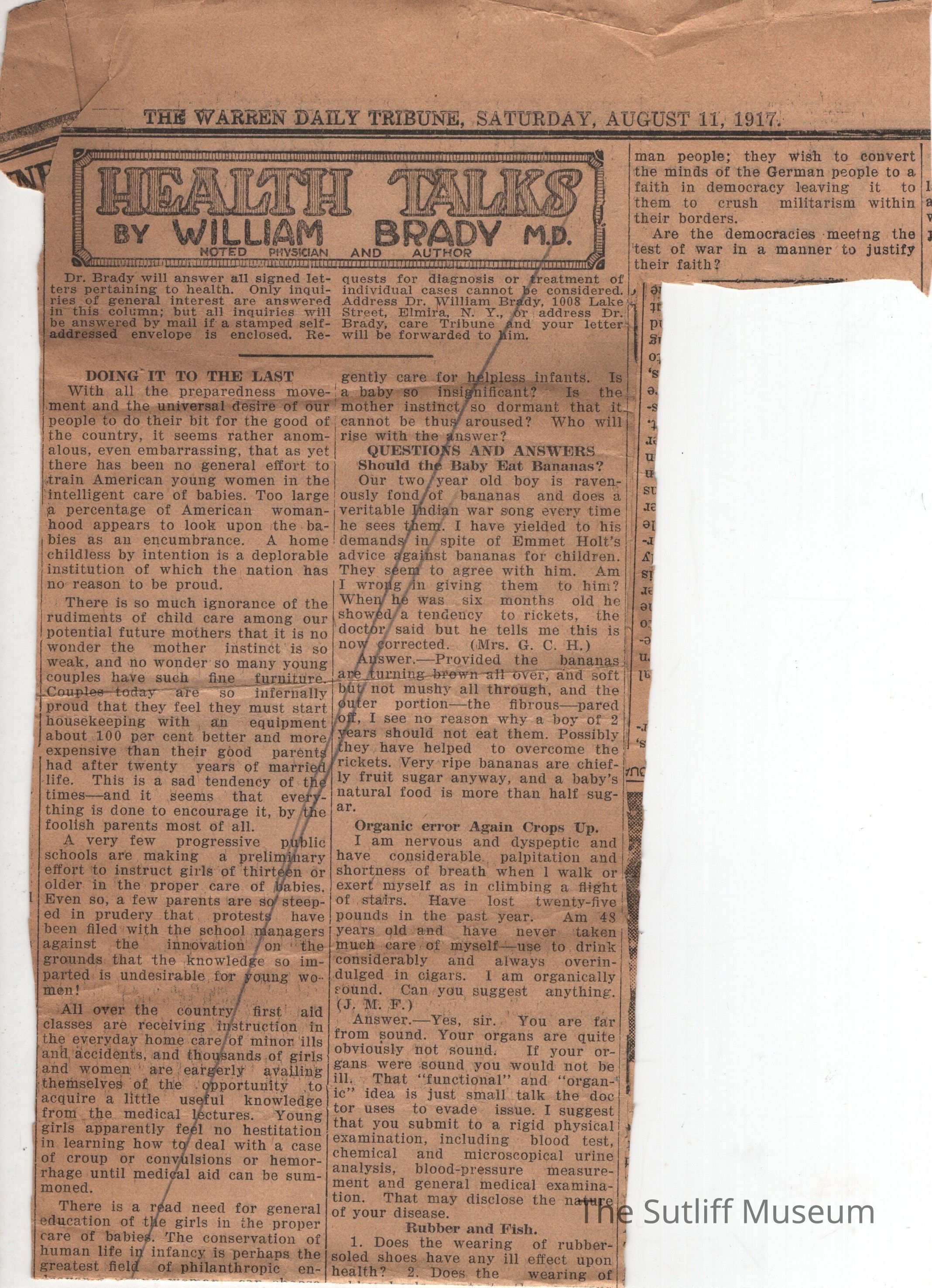 An article titled "German Militarism" by Phebe T. Sutliff. Dated 8/11/1917Collection