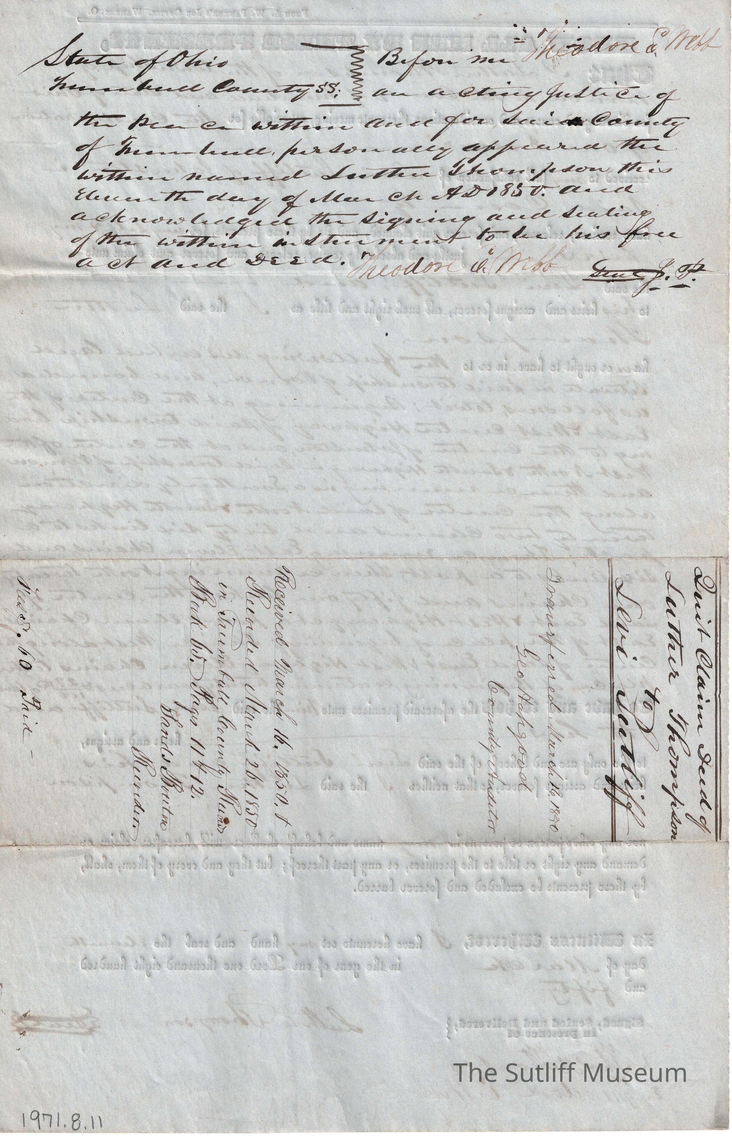 A land transfer between Luther Thompson and Levi Sutliff.Relationships