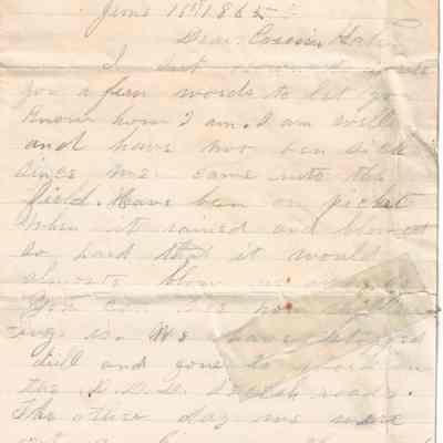 A letter from Plumb W. Sutliff to his cousin Kate Sutliff, which was written while he was in the army during the Civil War.Relationships