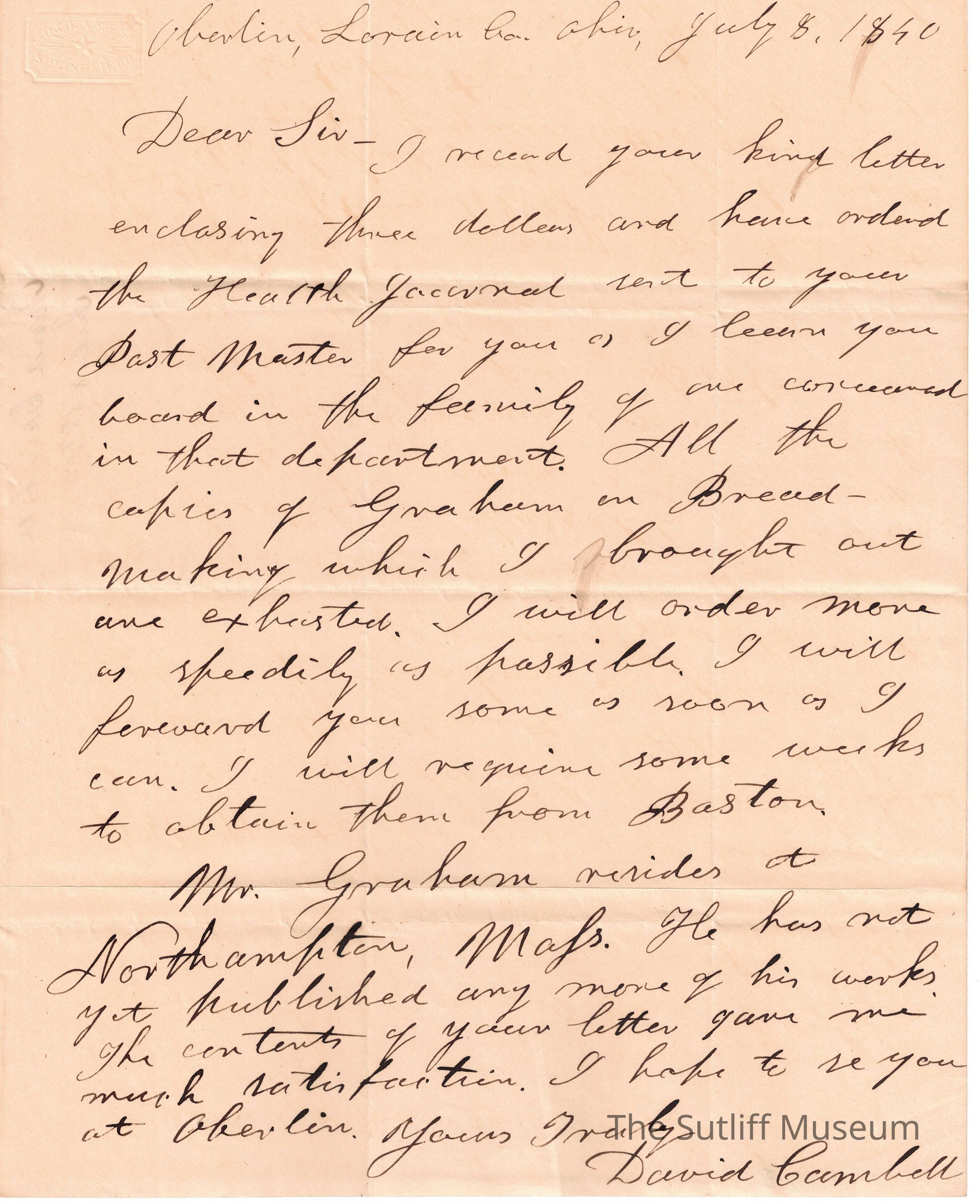 An letter David Cambell regarding a previous letter and Mr. Graham.